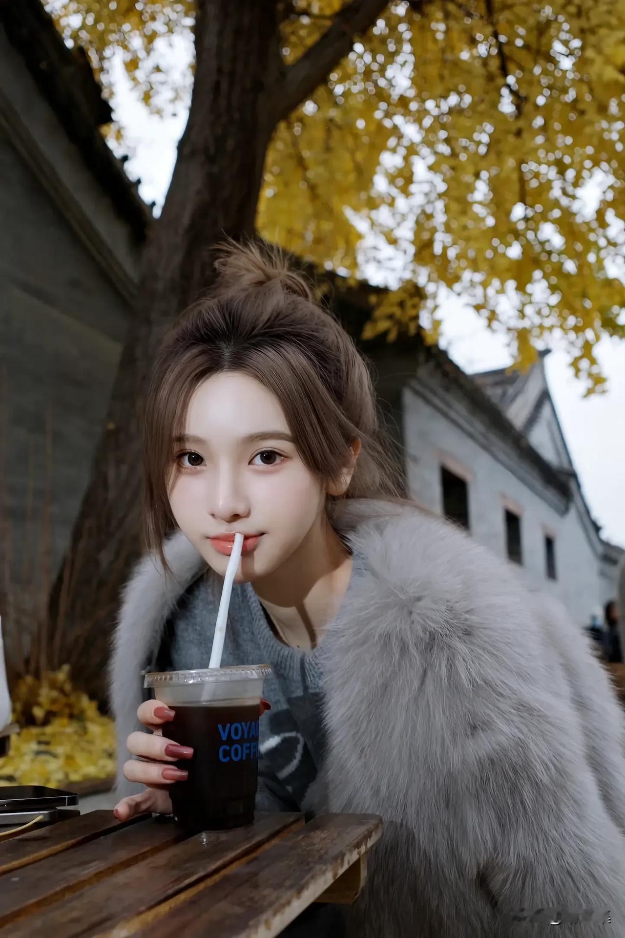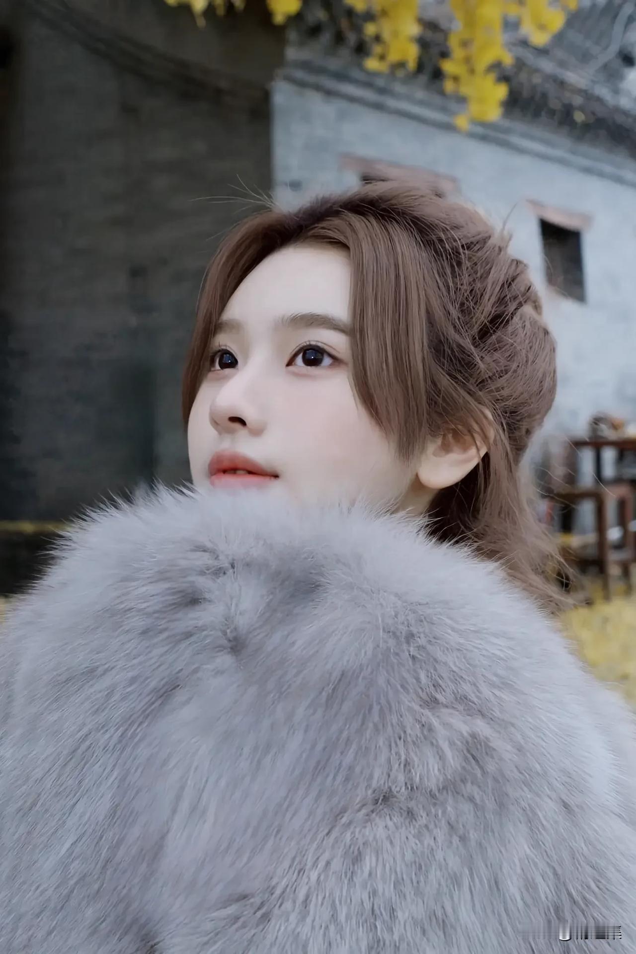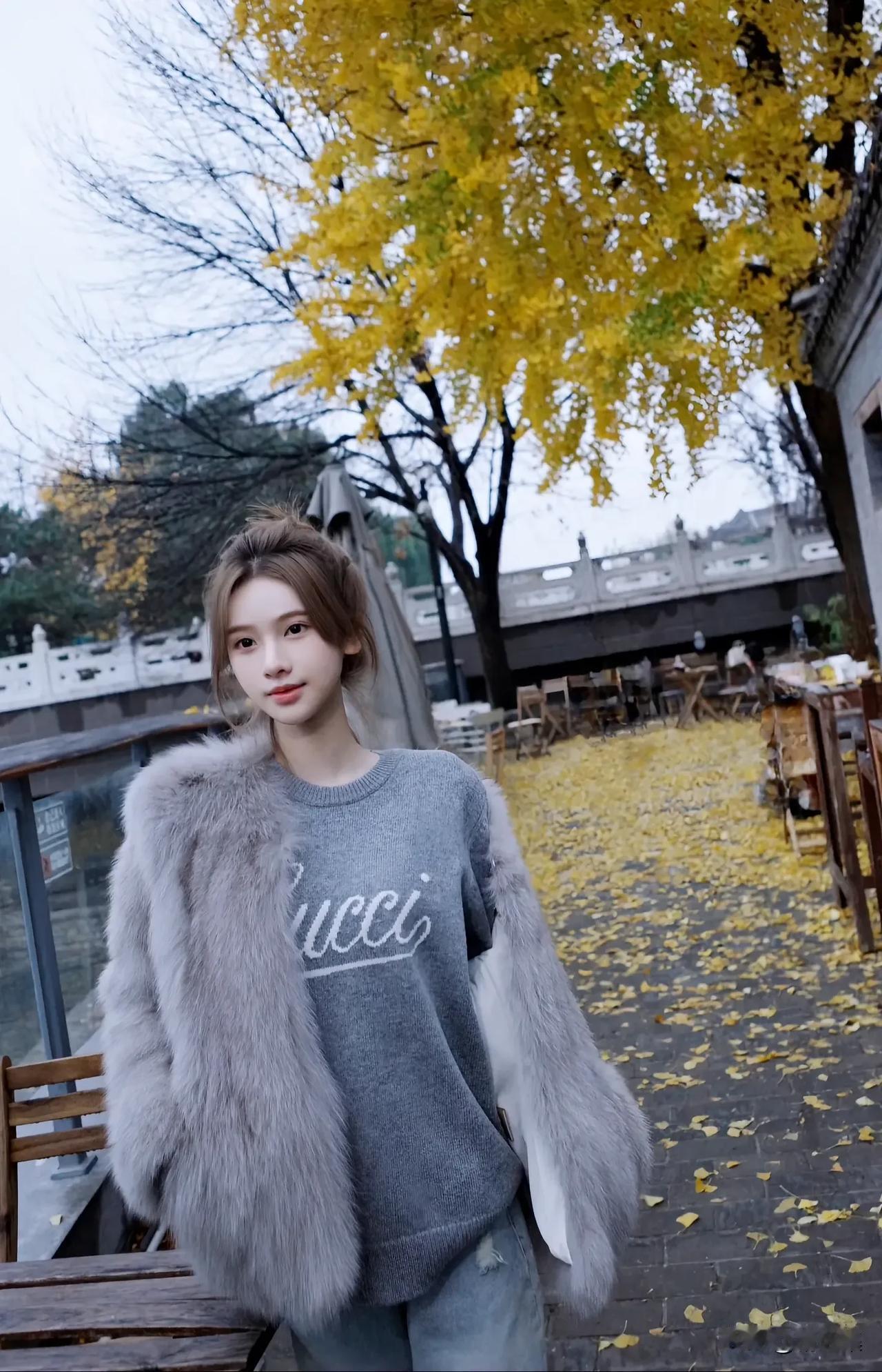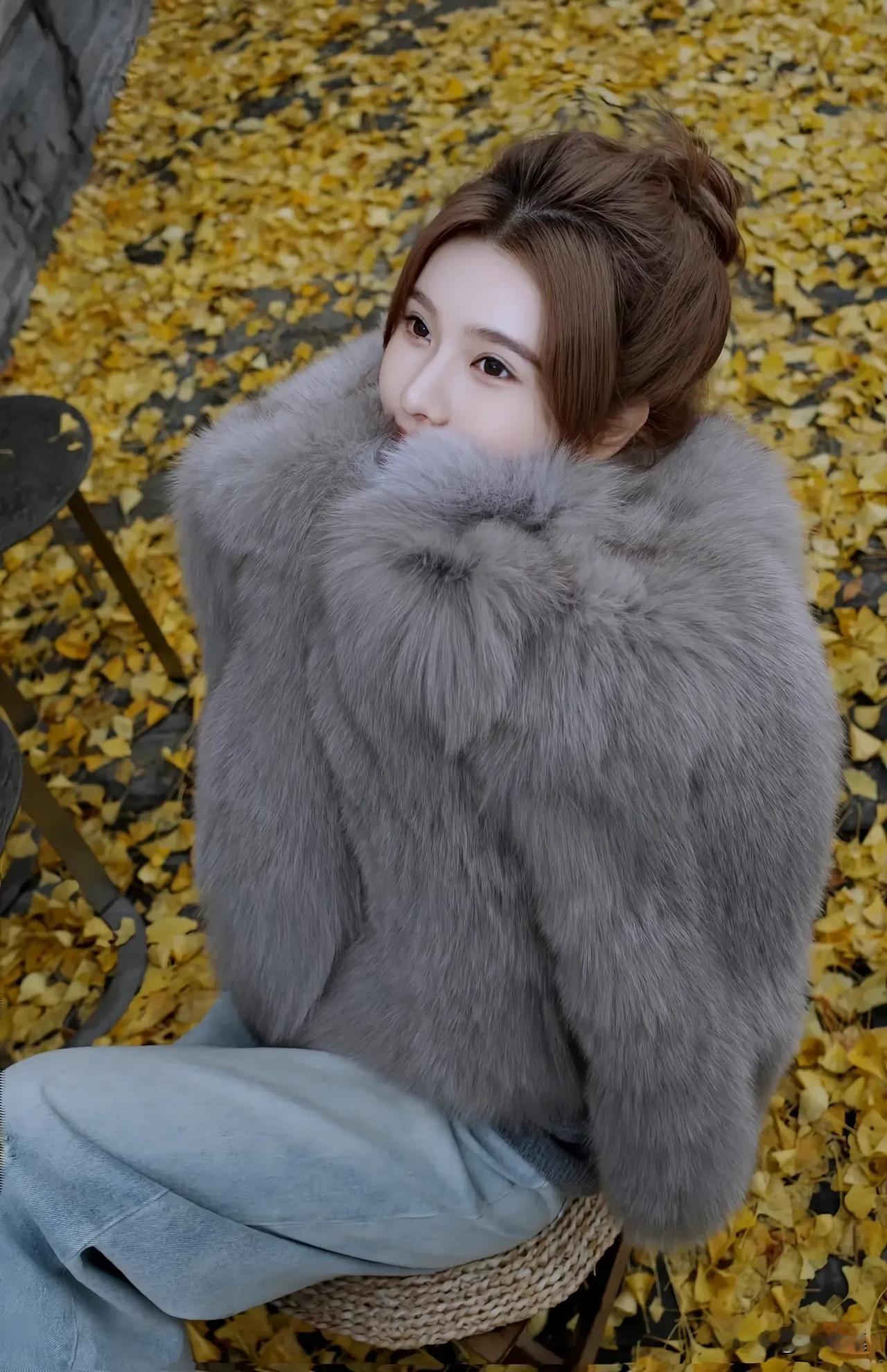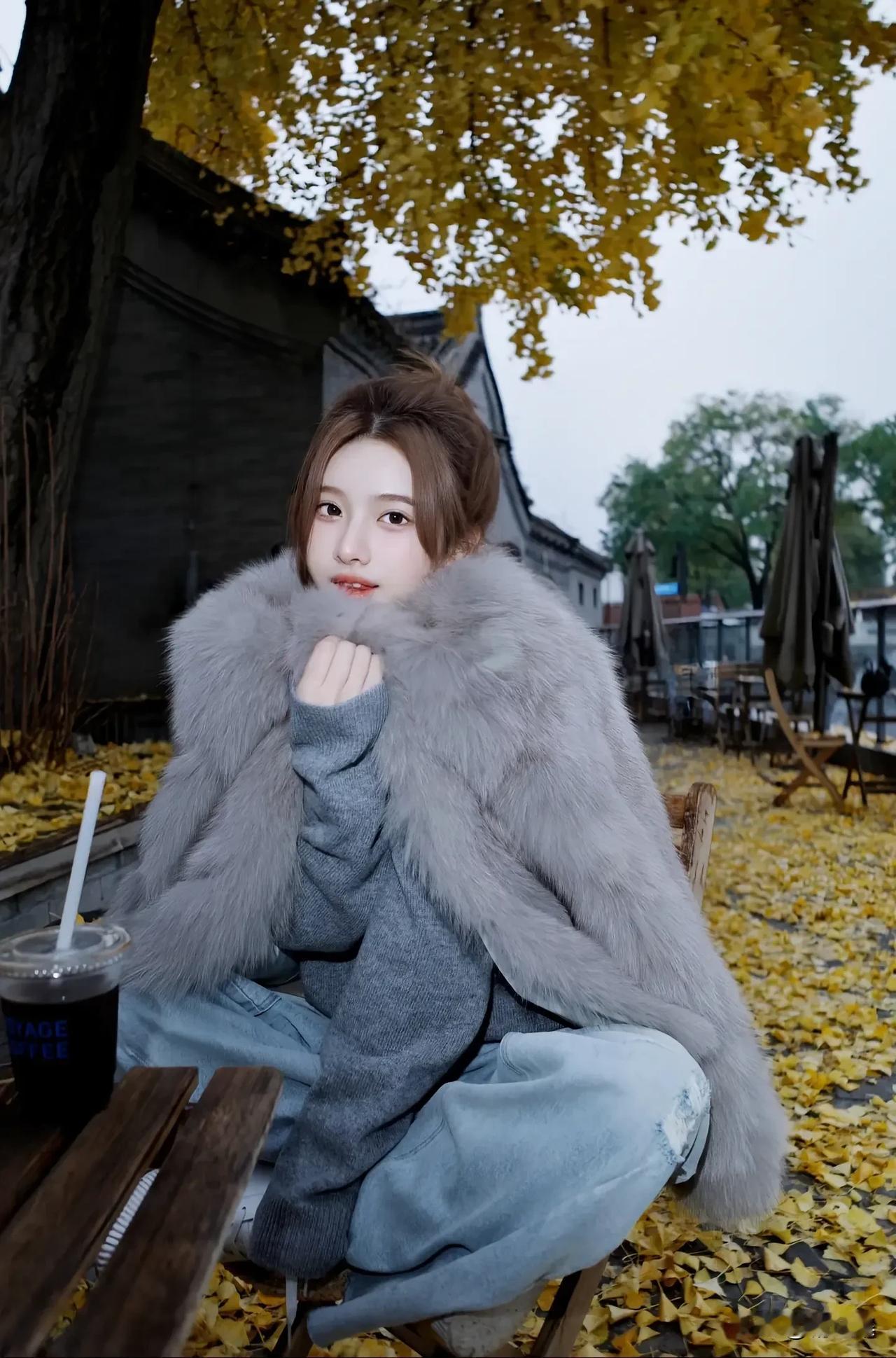 秋日暖阳下的温柔少女,毛茸茸的外套,暖意满满。🍂💕