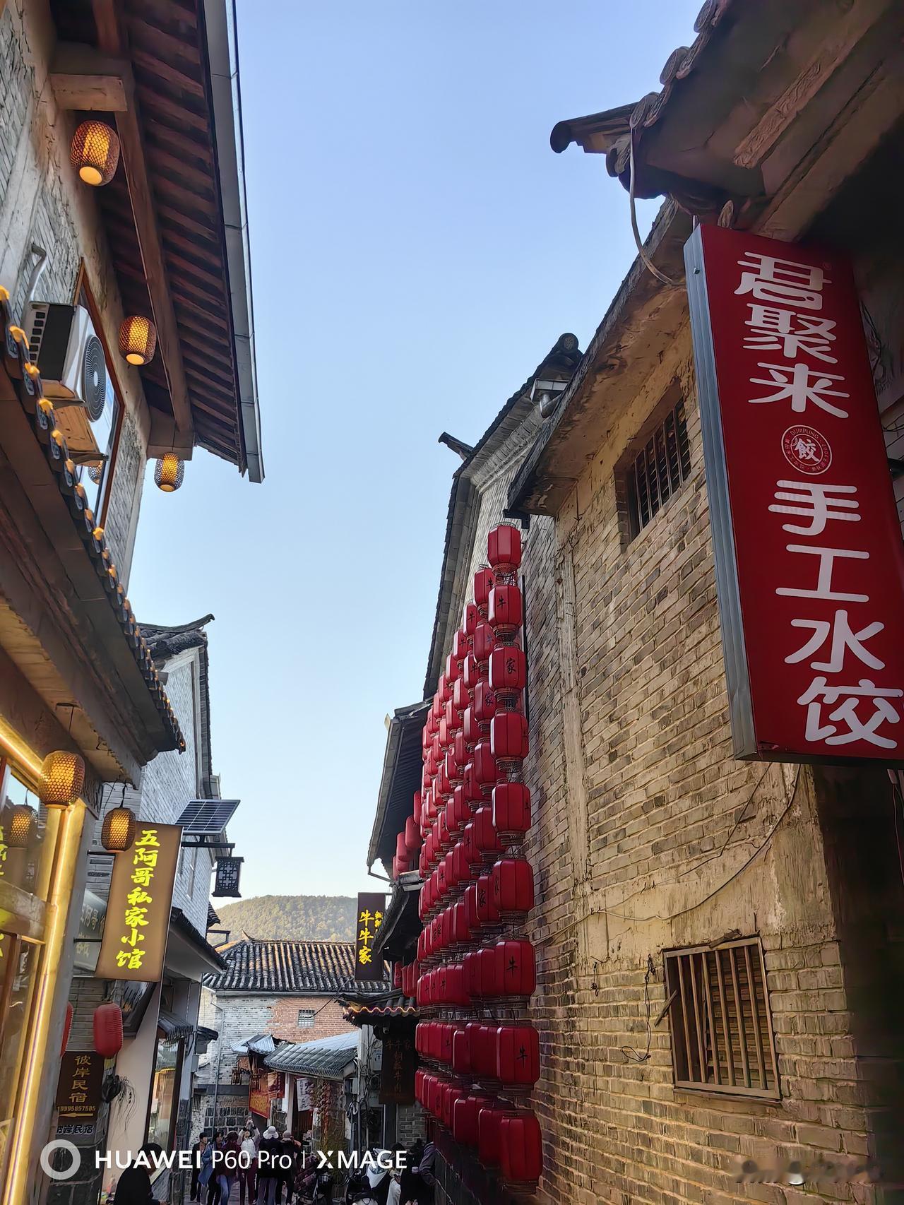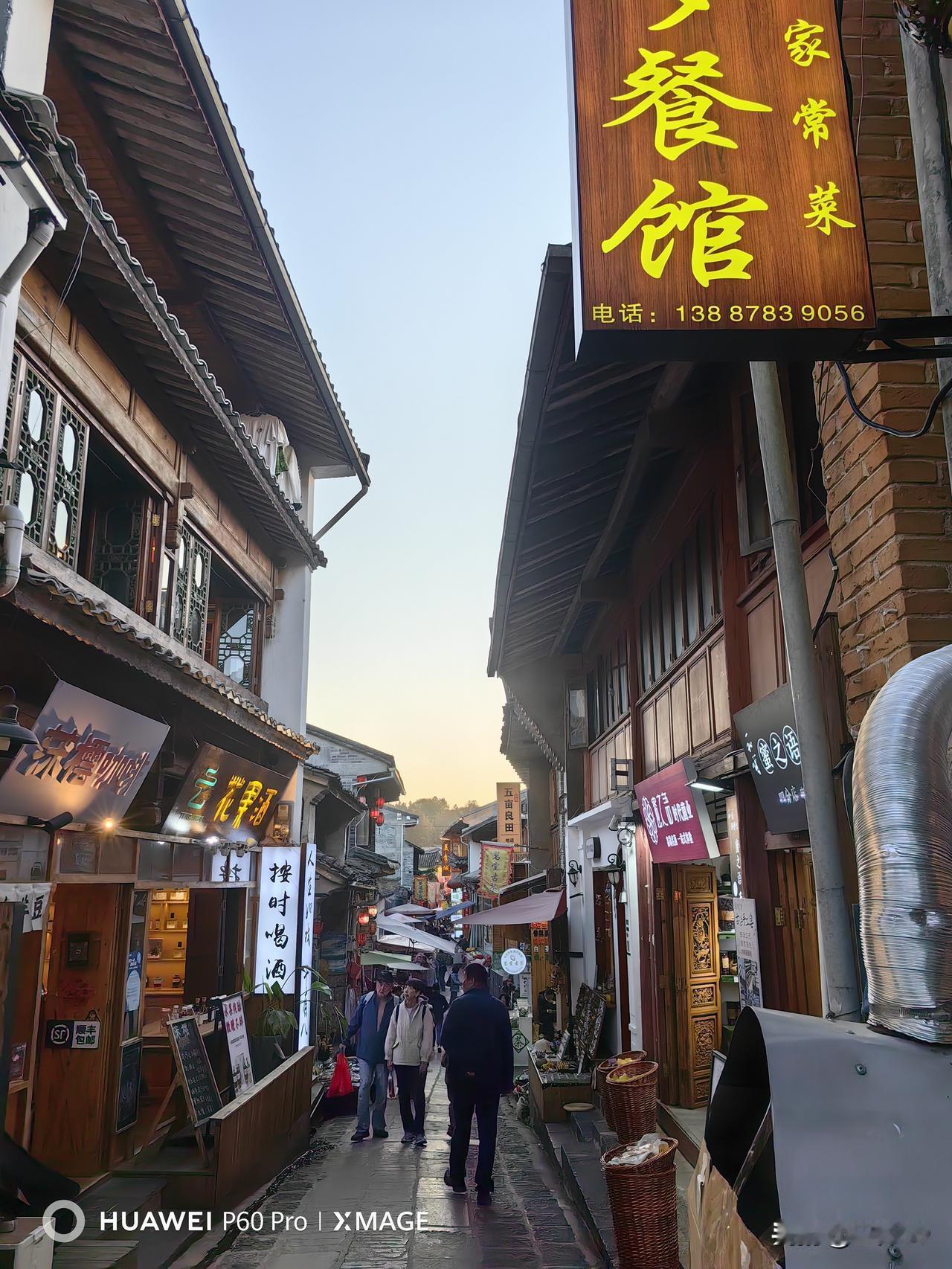 穿行在古旧的街巷里,木质屋檐勾着落日的余晖,红灯笼串起市井的暖意,春联红得热烈,小店的招牌透着烟火气。脚步慢下来,才懂这老街的温柔,藏在每一处鲜活的人间烟火里。