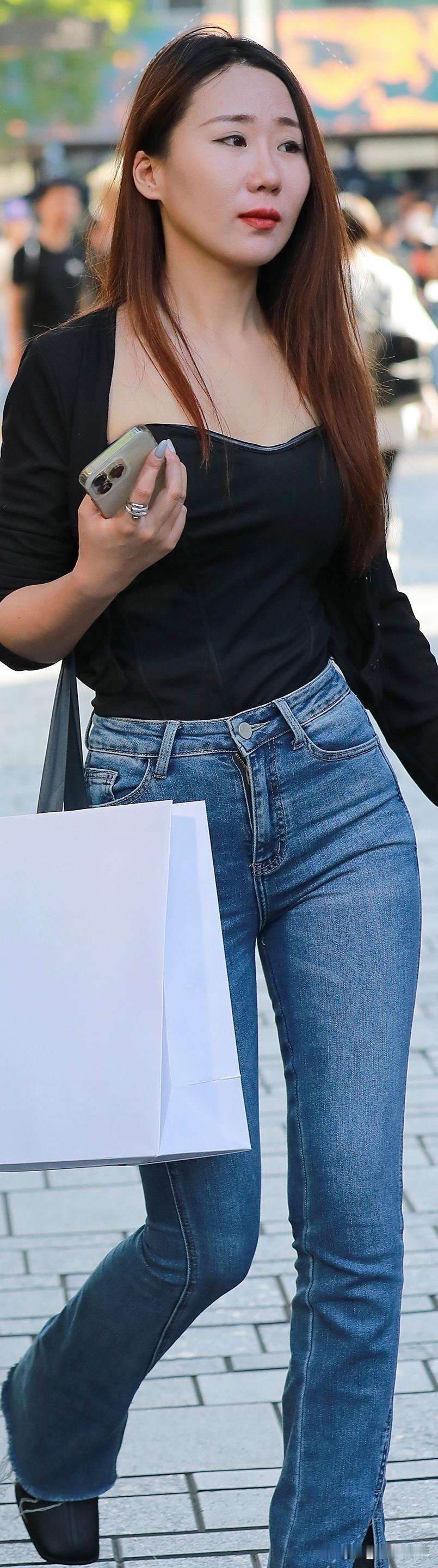 都市时尚里,黑色上衣配牛仔裤,再搭黑色靴子,手拿购物袋,这搭配简直都市感拉满! 秋冬时节,牛仔裤和靴子是绝配。不同身材选对牛仔裤版型很重要,梨形身材选直筒裤配5cm短靴,能遮胯显腿直;苹果型身材选高腰烟管裤搭及踝中筒靴,可提高腰线;小个子女生九分小脚裤配厚底短靴,显高挑利落。 要是再搭个牛仔外套,剪裁别太宽松,选“微宽松”合身款更精神。颜色上,浅色显年轻,深色显稳重。这么一套搭配下来,走在都市街头,时尚感稳稳拿捏!