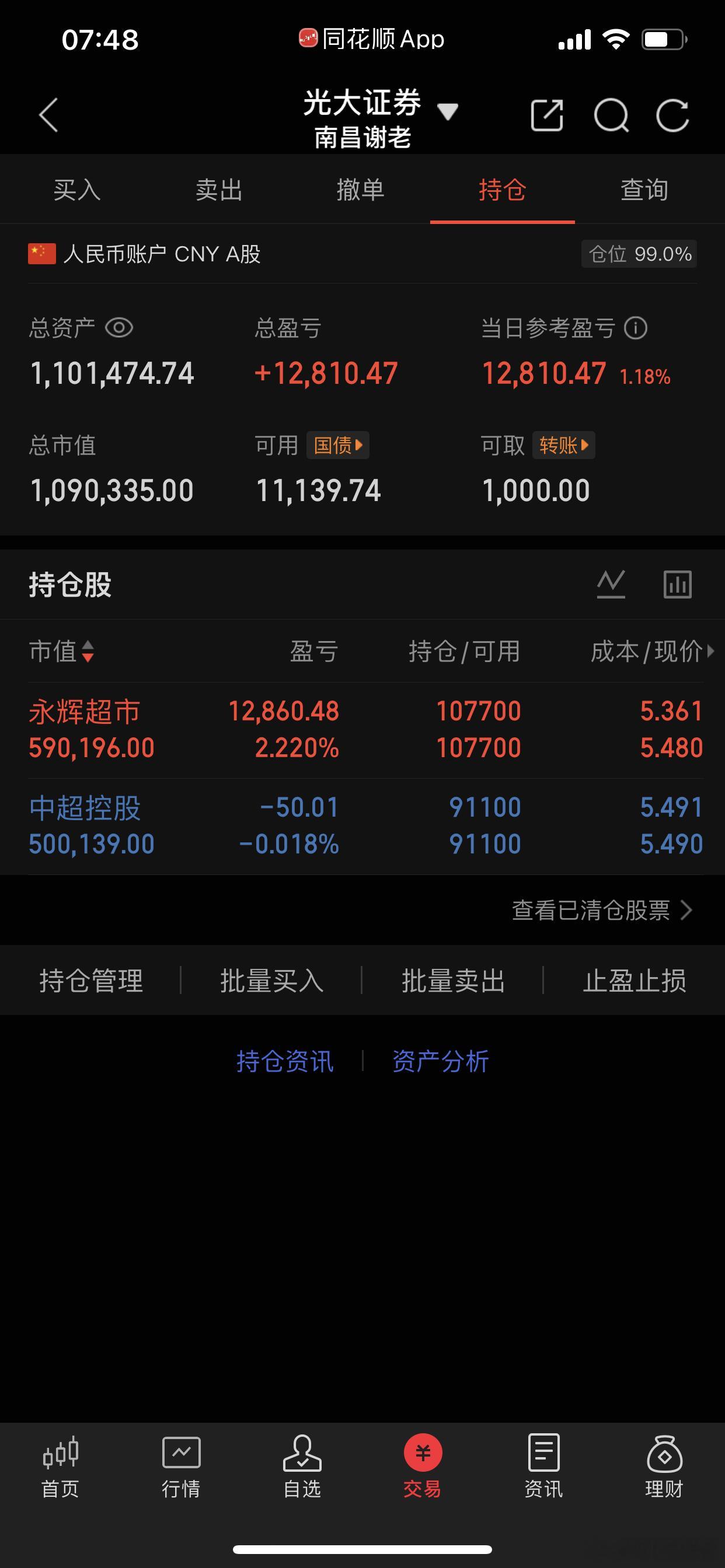 昨天中超控股跌8.94%,我5元卖出,收盘4.99,今天没有延续继续下跌,居然涨