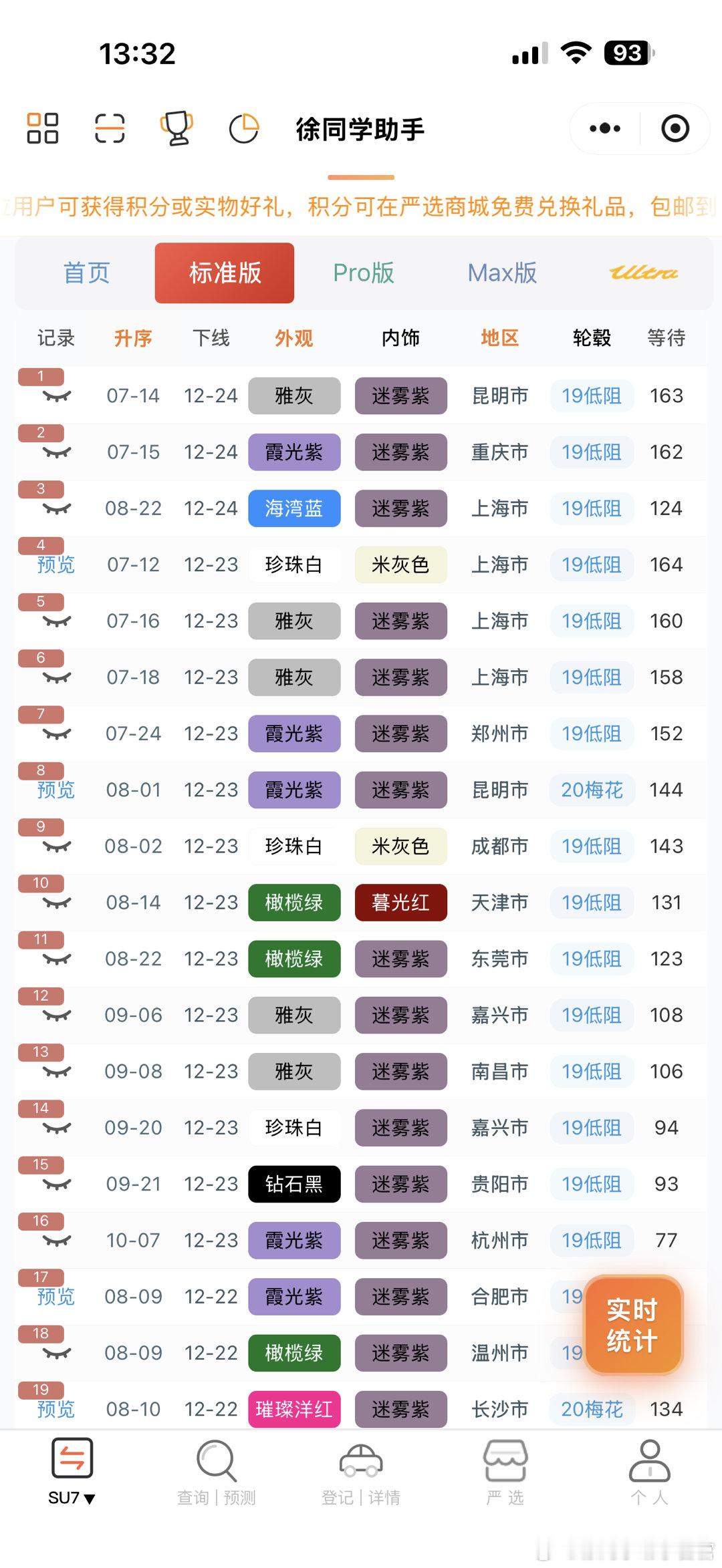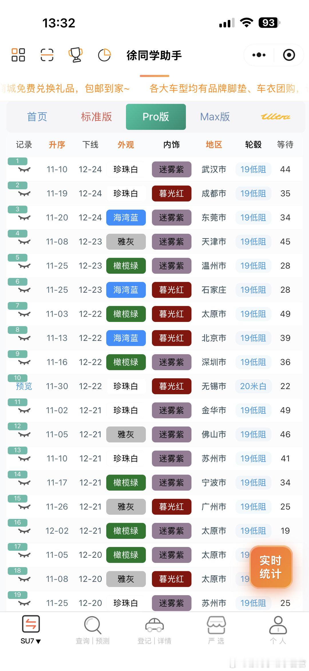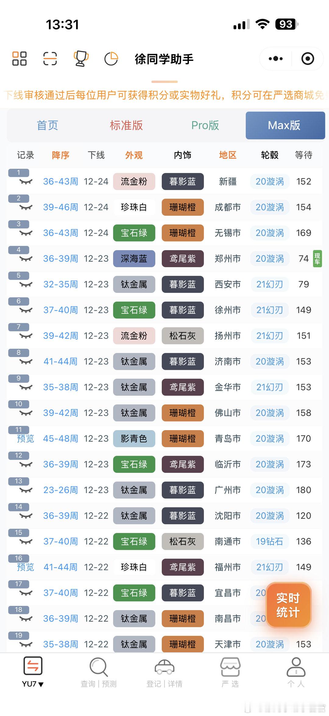 冬季开车:今天寒潮来袭,续航还是很顶,我的max充到80%依旧有450km左右的实际续航。关于续保:前些天给su7max续保,第一年9000多,第二年没出过险(有违章),续了人保6200多,属于官保,仍旧可以买无忧包服务。续保基本上可以在第一年的基础上最少优惠1700明天发布17ultra,可惜没车…‼️不过没产能就不发新车,这次小米听劝了🌀YU7(据不完全统计)合计171台1️⃣标准:下线92台,基本都是在下30周之后的,跳周后剩余的周数都在39周左右2️⃣Pro:下线69台台,26号之后的开始多起来了,春节前还能交付很多3️⃣Max:下线10台,现车还有最后一天关于跳周现车改配活动结束后可能会迎来跳周更多关于小米汽车的最新资讯和深度解析,请参考【米车派】~徐同学助手小米汽车