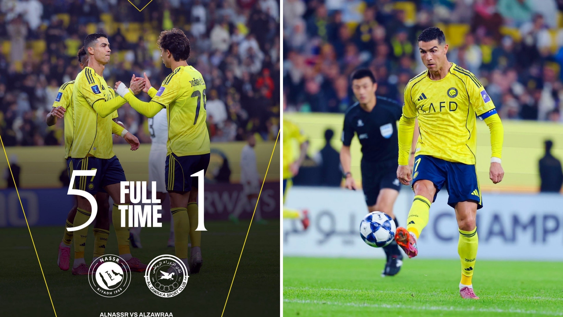 亚冠:利雅得胜利主场5-1大胜扎瓦拉,全胜出线。 利雅得胜利多点开花,科曼完成双响,C罗送助攻。
