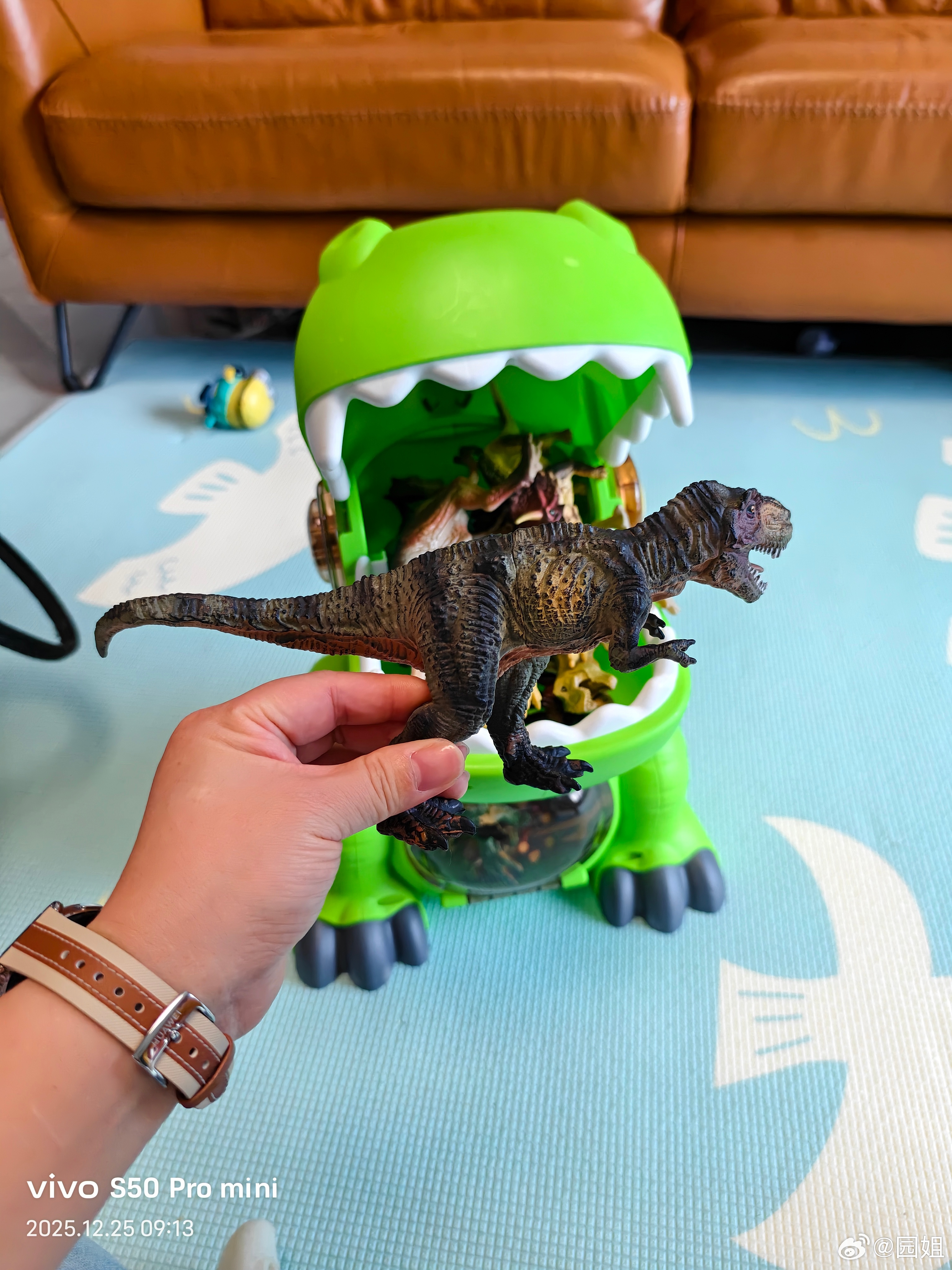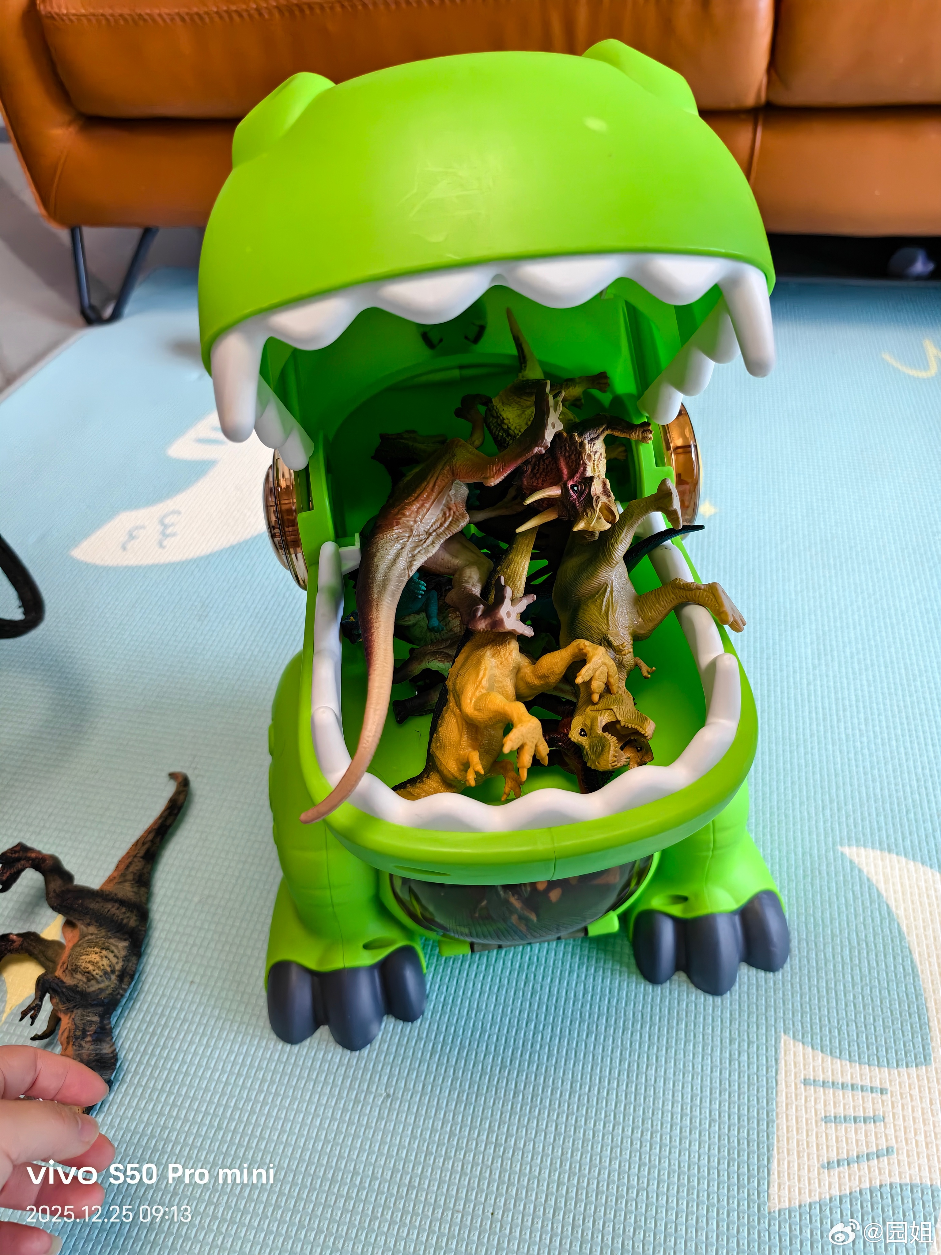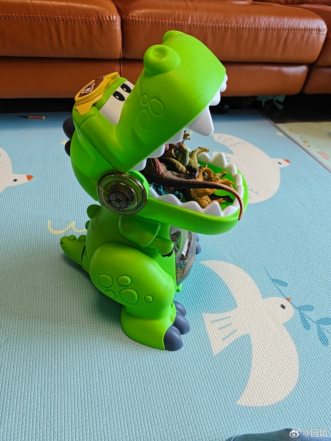现在小孩子的玩具真的是太好玩了。这个大恐龙里面装了一堆小恐龙。还会发出恐龙叫声