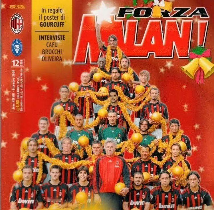 还记得这是哪一年的圣诞树吗? 那个赛季米兰在意甲、欧冠齐头并进,可惜欧冠四分之一决赛第二回合被拉科鲁尼亚翻盘。意大利杯半决赛0比4惨败给拉齐奥,但是不影响圣诞树的使用,因为那个赛季米兰拿到了意甲冠军。