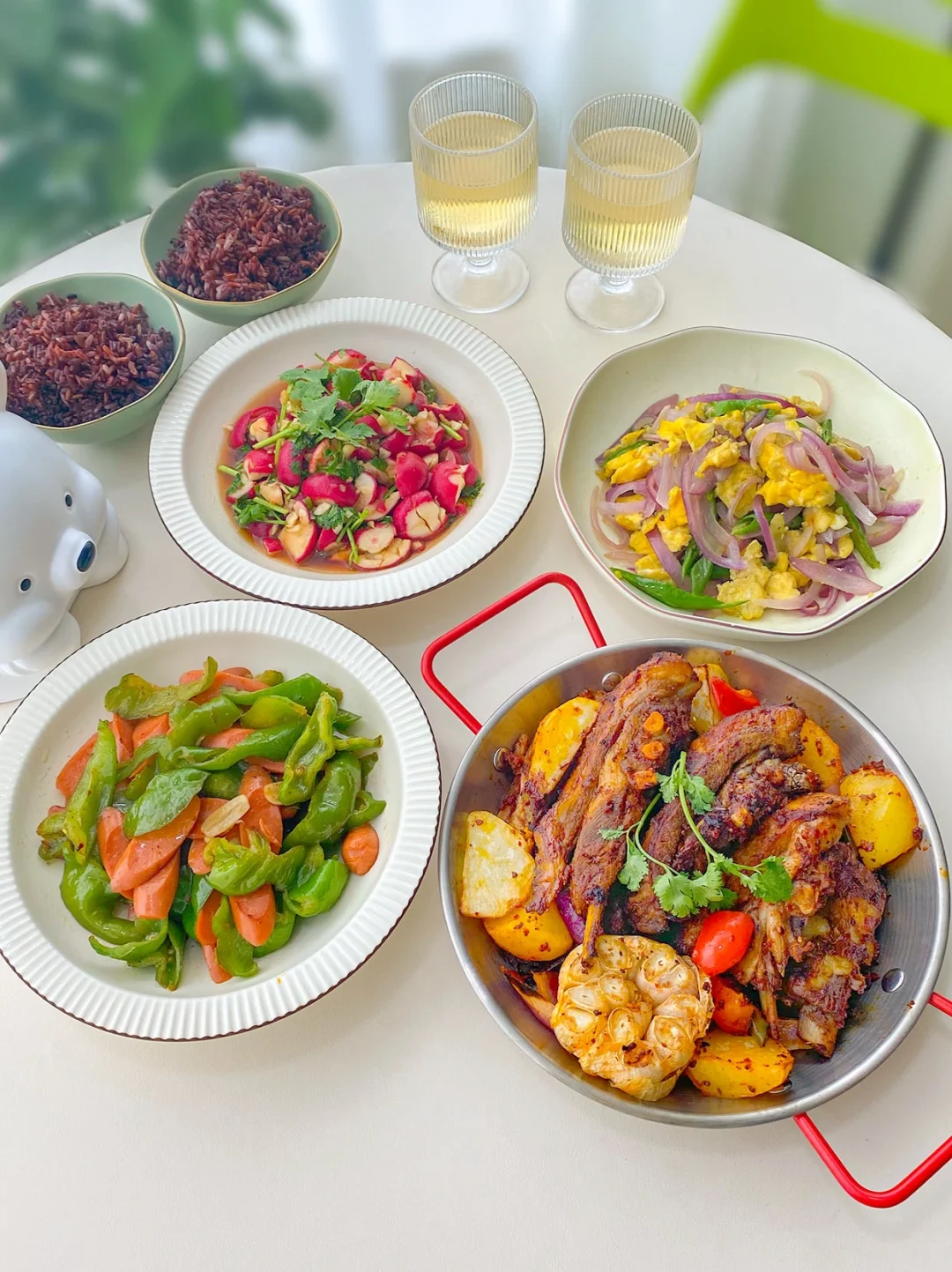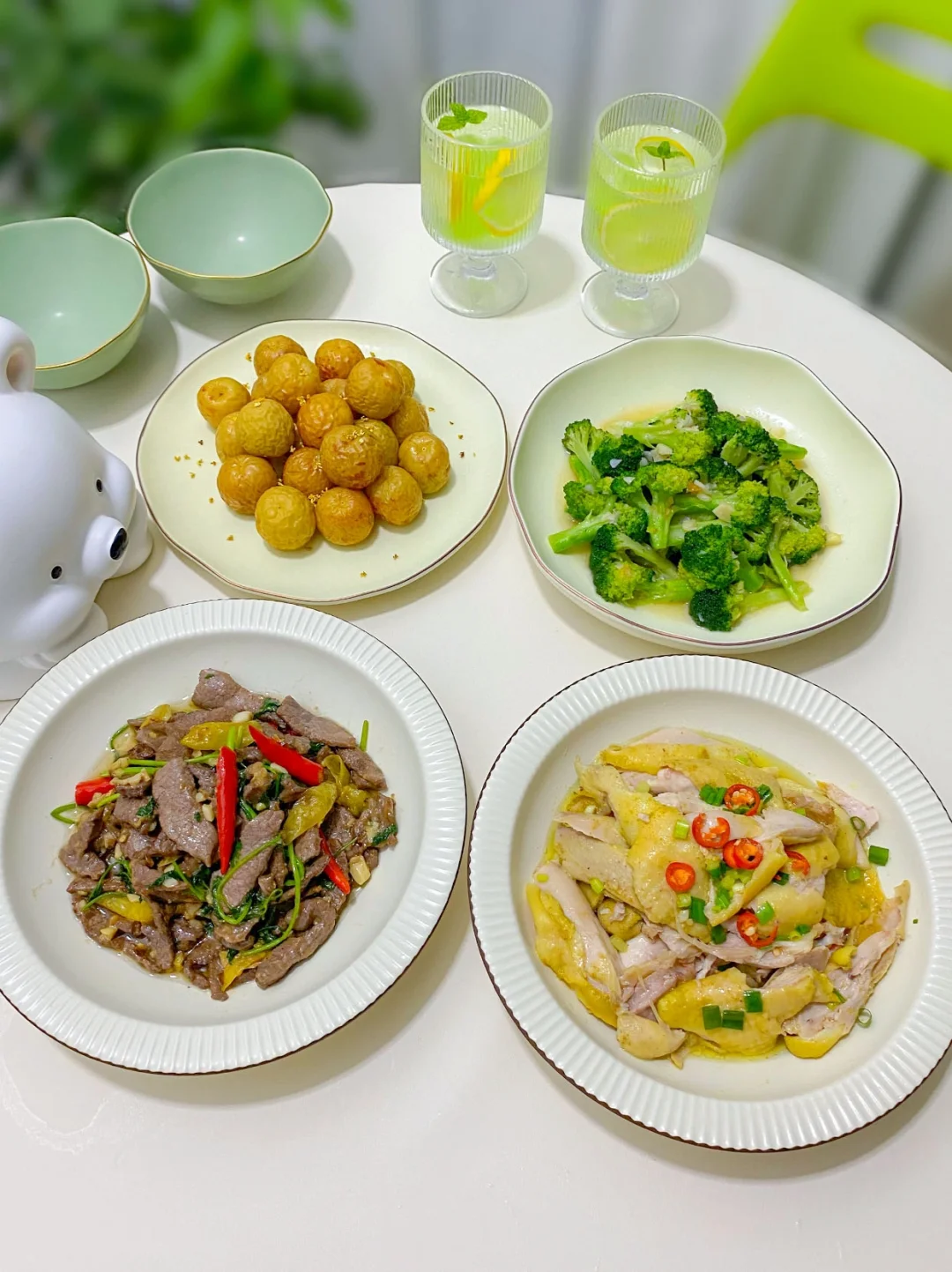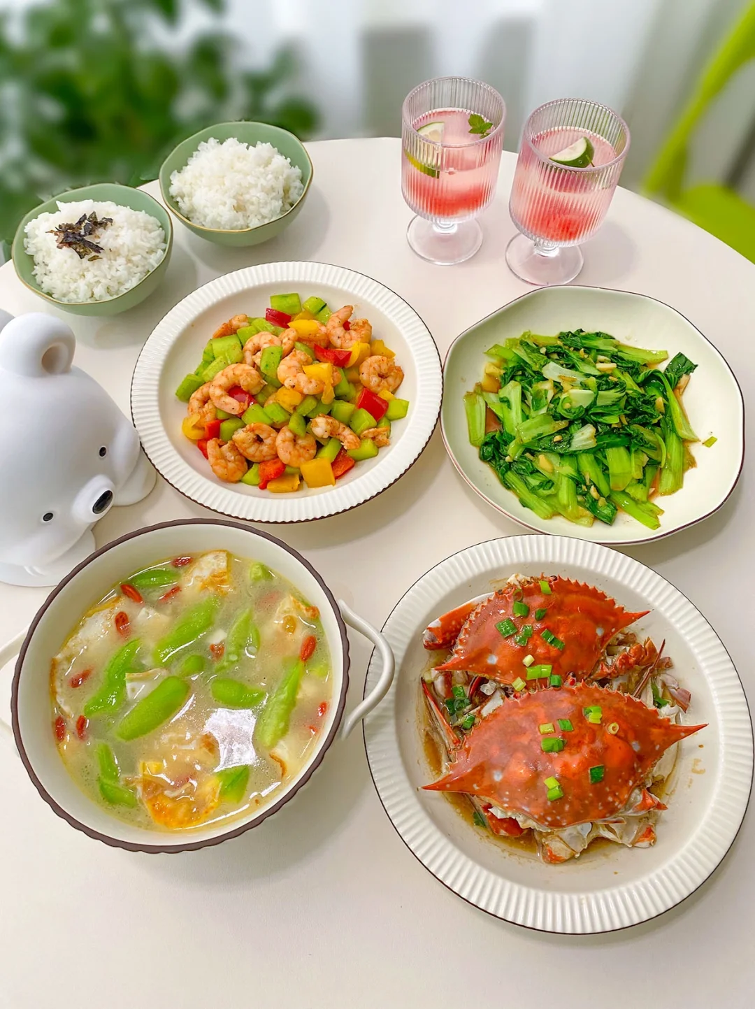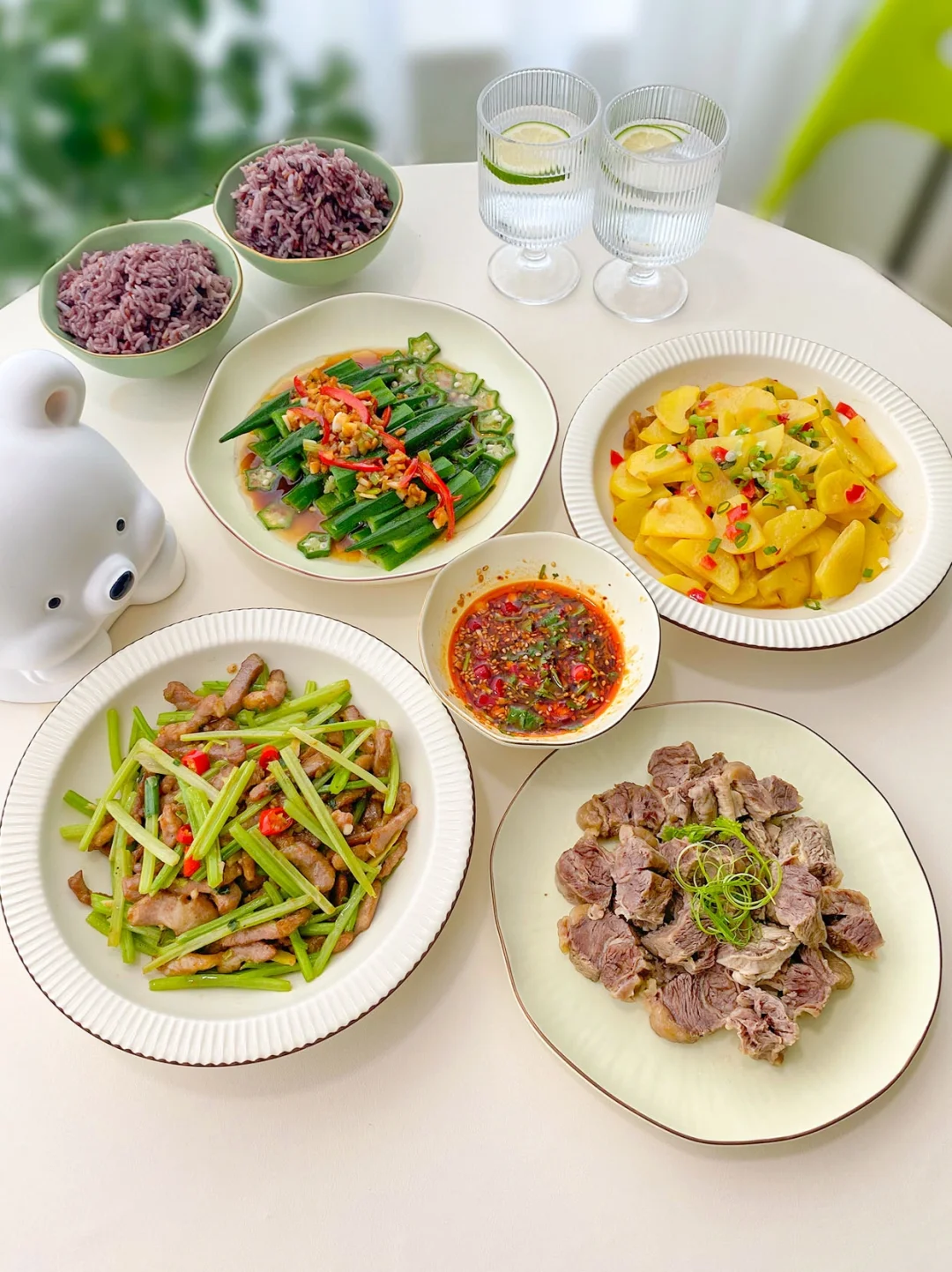 1⃣️排骨土豆汤+清蒸平鱼+清炒空心菜+凉拌海带丝 2⃣️照烧鸡腿+酸汤肥牛+小葱拌豆腐+炒青菜 3⃣️小炒牛肉+盐焗鸡腿+清炒西兰花+蒸冬枣 4⃣️白切牛肋条+剁椒土豆片+香芹炒肉+白灼秋葵 5⃣️烤羊排+洋葱鸡蛋+辣炒香肠+拌樱桃萝卜 6⃣️蒸梭子蟹+黄瓜虾仁+丝瓜蛋汤+炝炒油菜 7⃣️酸菜鸡翅+蜜汁叉烧+干锅菜花+白灼芥蓝 所有菜品做法见主页每日笔记哈