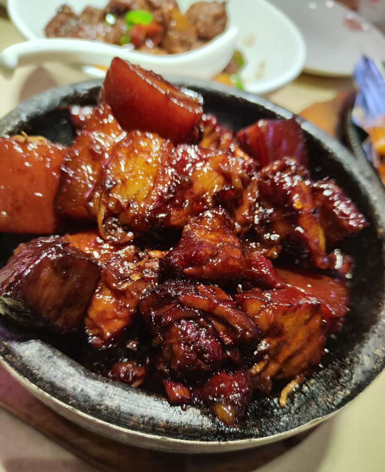2️⃣.红烧肉,五花三层的土猪肉,色泽红亮诱人,肥而不腻,瘦肉入口即化