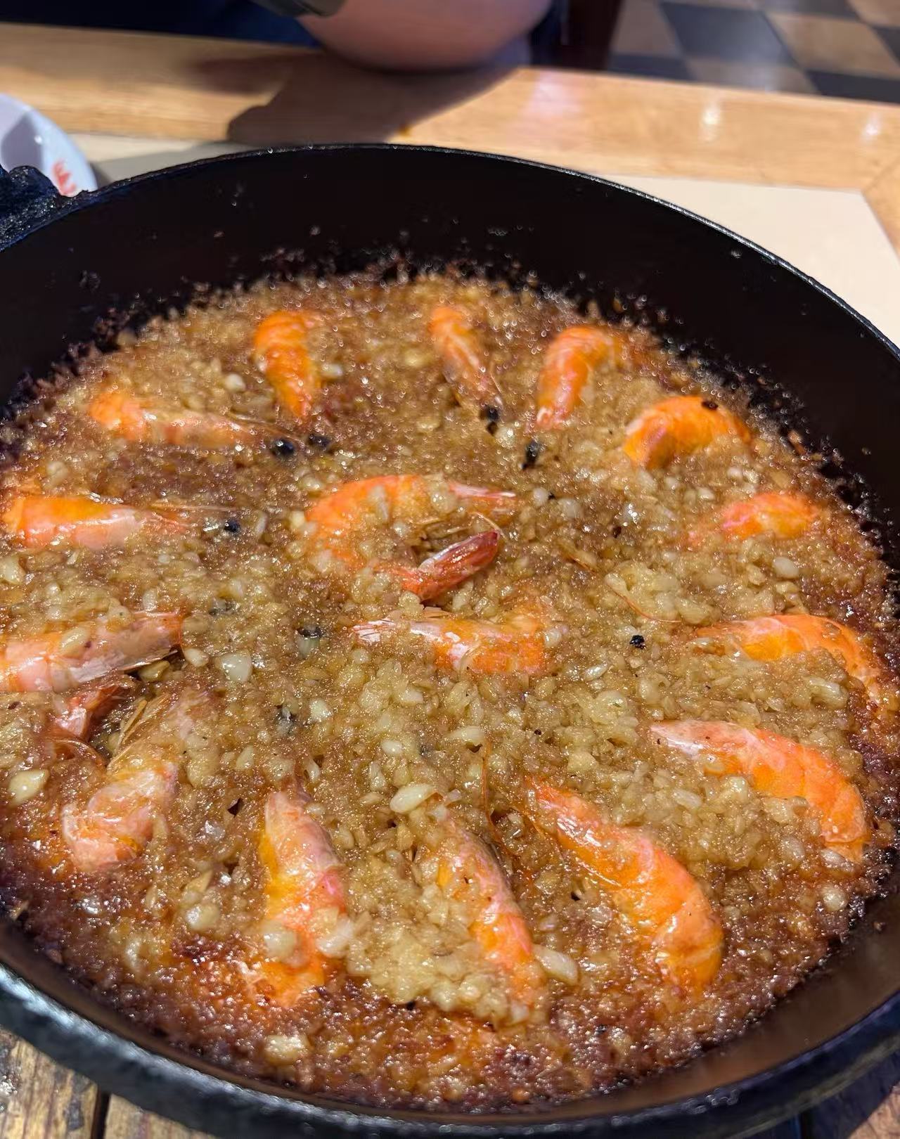 4️⃣.铁板基围虾,新鲜的基围虾,直接搭配蒜蓉,虾Q弹,吸满了蒜香味。