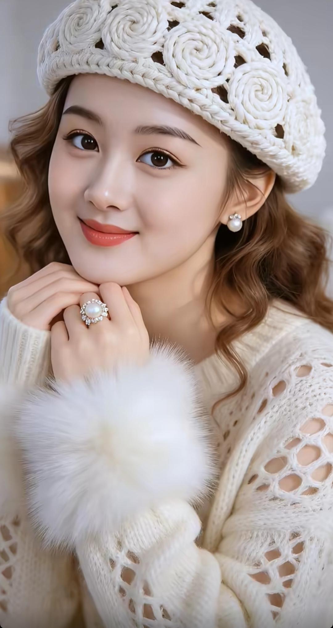 冬日暖阳下的甜美女孩,毛绒帽子和毛衣的完美搭配,温柔动人。高清美女 美女人像群
