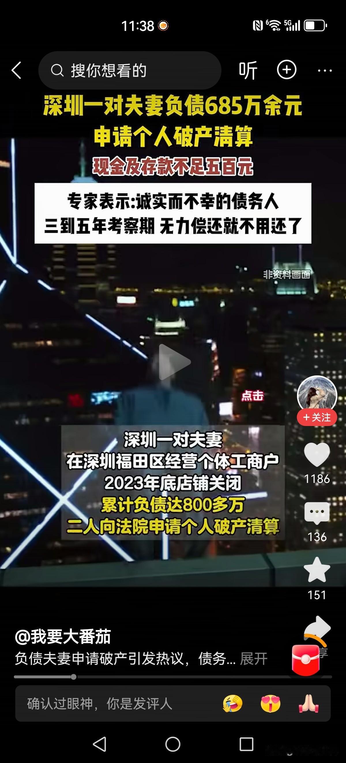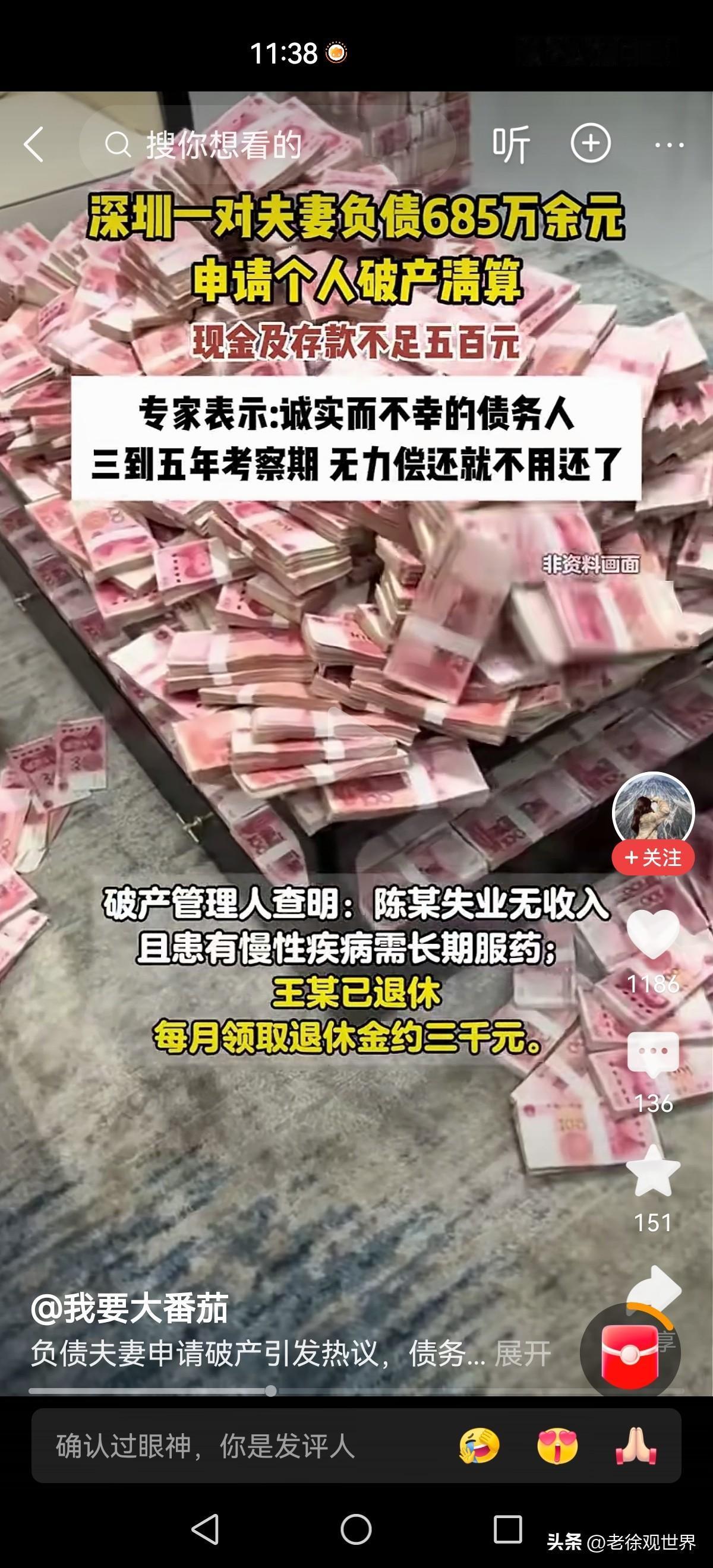这也可以啊,申请个人破产清算。六百多万元的外债,说不还就可以不用还了?那么债主哪里怎么交代?个人破产 公司企业破产 普通人破产 破产 破产清算 个人破产新规 个人破产潮