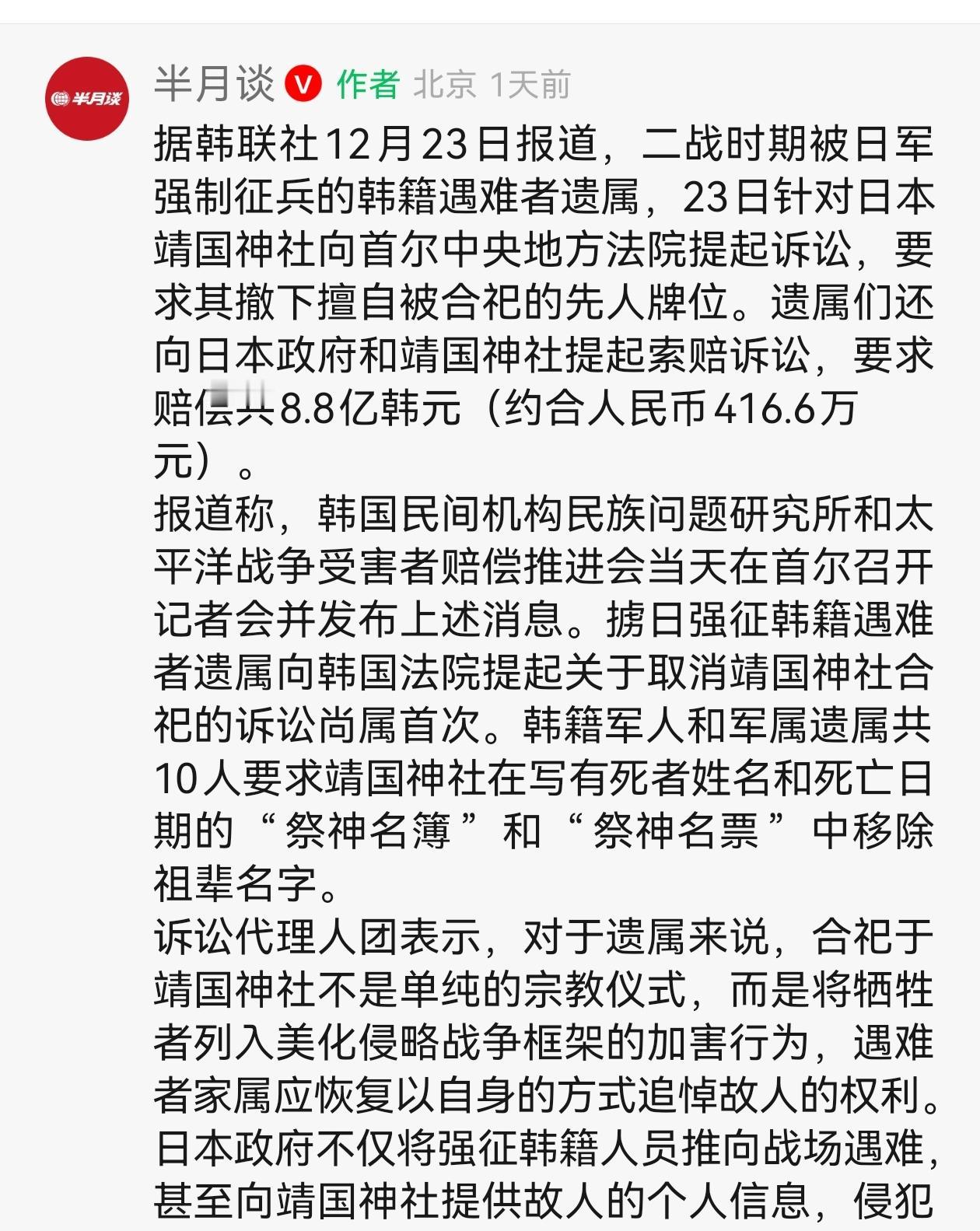 韩国人做得好,开始起诉日本鬼子的靖国神厕!有种!