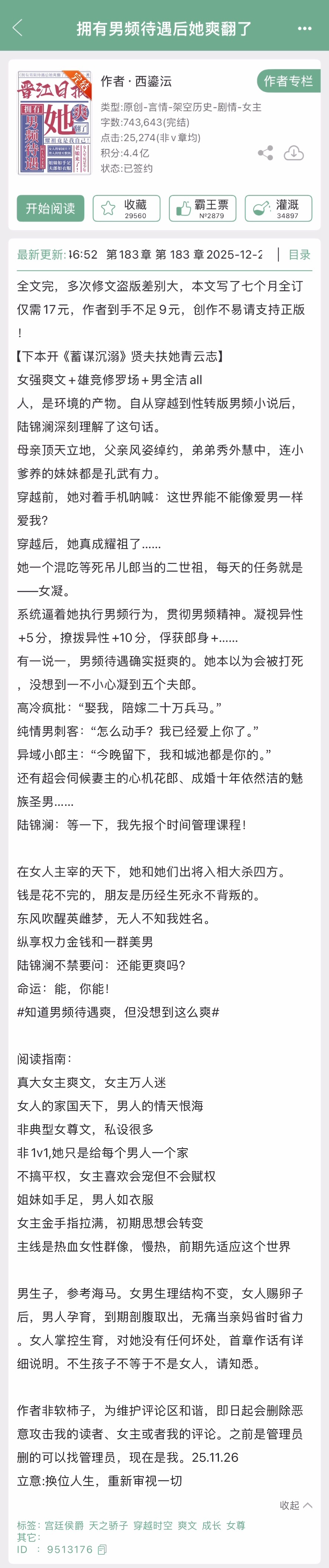 西鎏沄的《拥有男频待遇后她爽翻了》完结啦!女强爽文➕热血女性群像➕女主万人迷➕雄竞修罗场,女人的家国天下,男人的恨海情天