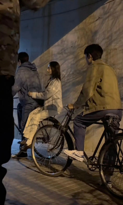 胡歌身穿深色工装外套,身形清瘦(为角色减重12斤),李沁梳复古辫子、穿格纹棉衣,坐在老式“二八大杠”自行车后座。夜戏背景中暖黄路灯、斑驳砖墙、煤炉等细节强化了90年代印记。