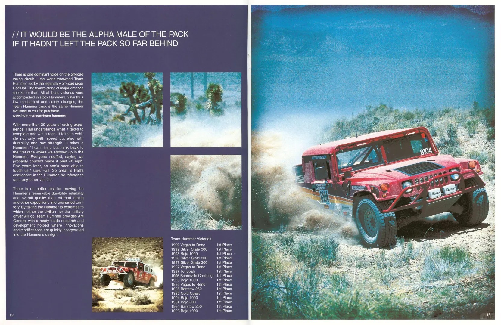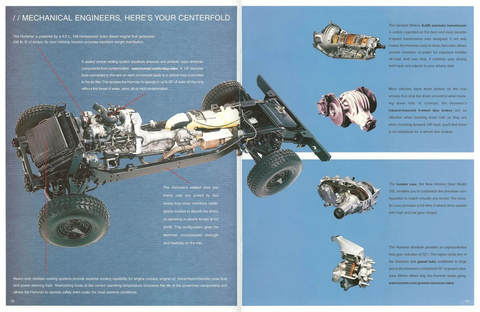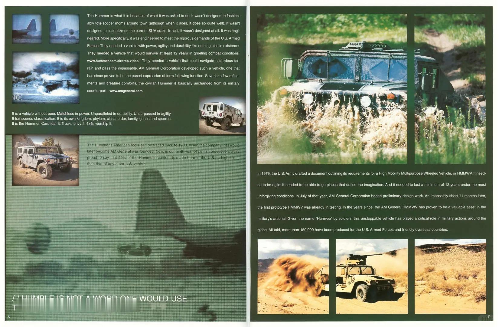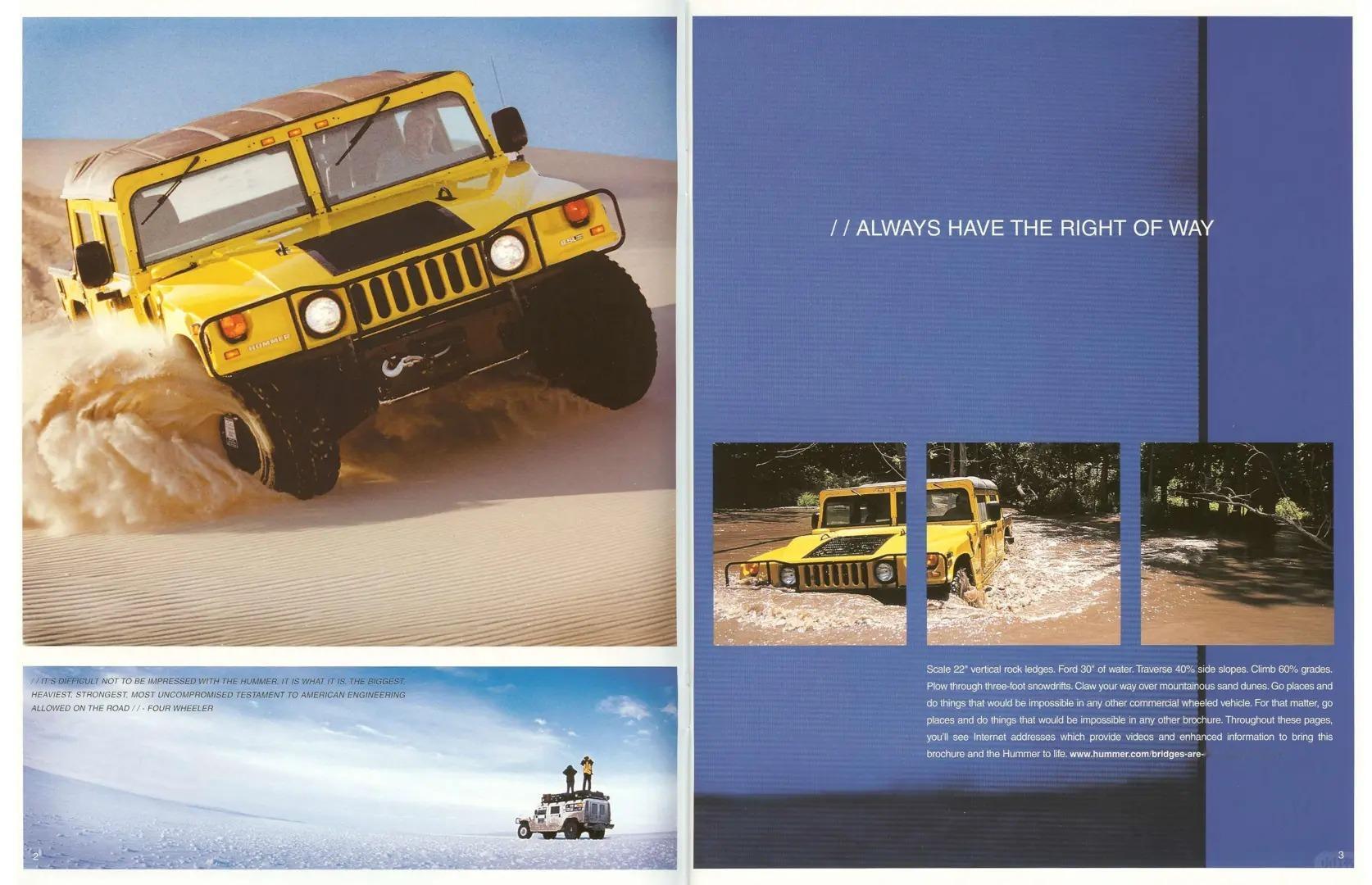 Hummer H1 2000款的宣传册,讲解了一些悍马H1的参数,当时的H1是6.5T八缸柴油引擎搭配4速自动的的配置,这个也是H1上最主流的一套动力总成。悍马H绝对算是我最喜欢的汽车之一,从小学就很喜欢,就各种画H1,研究H1,购买H1的模型,微博也是看到好的就分享。