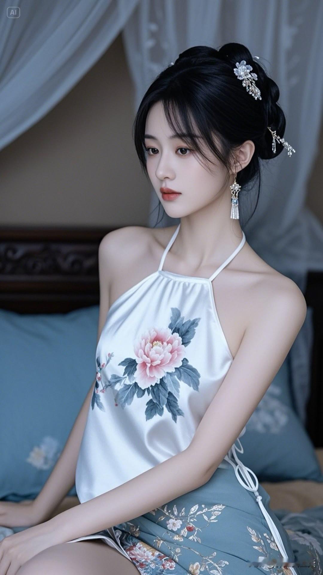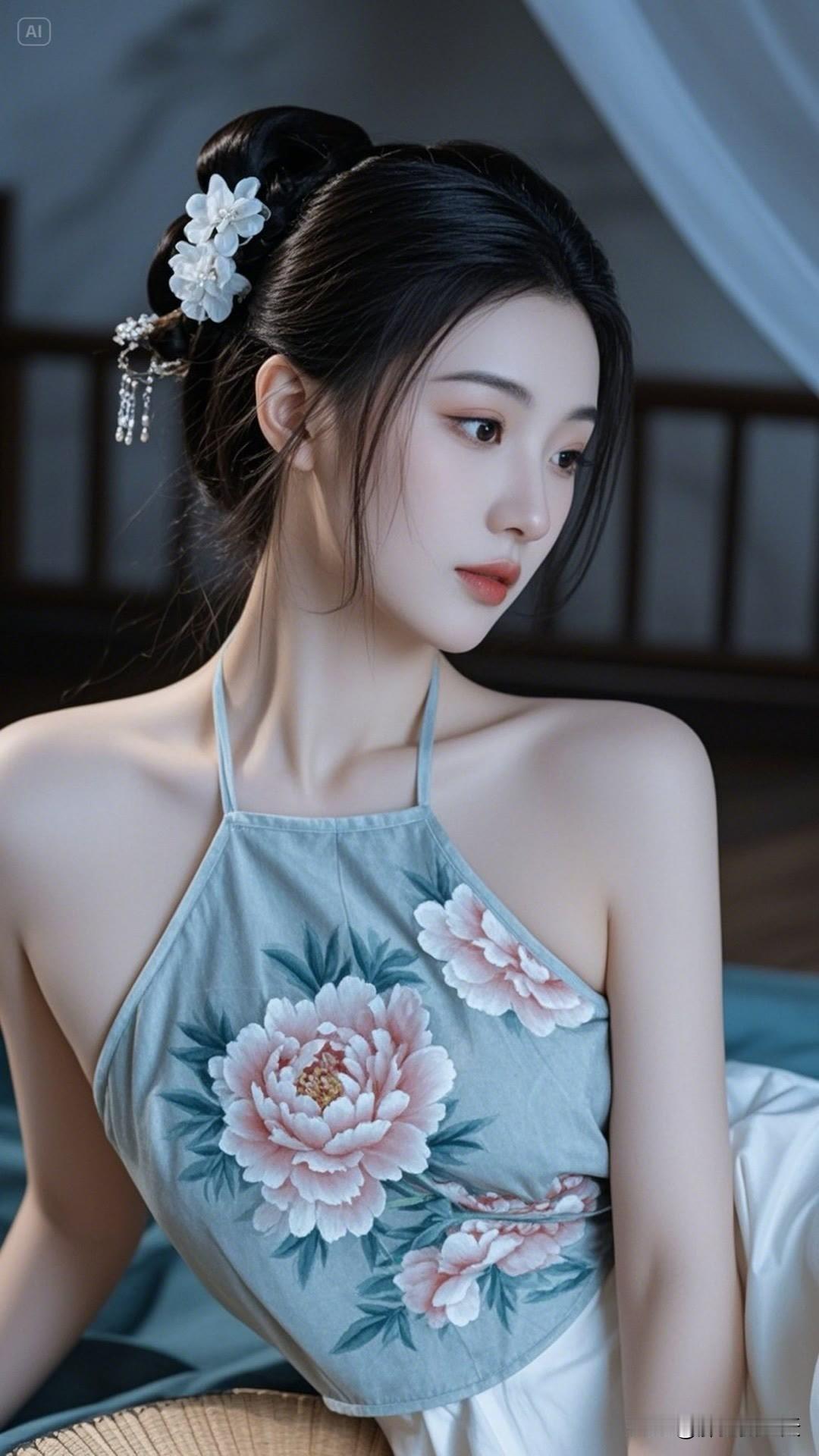 瞧那古装美女,青丝高挽步摇轻颤。眉眼盈盈如秋水,朱唇不点而赤,身姿婀娜,举手投足