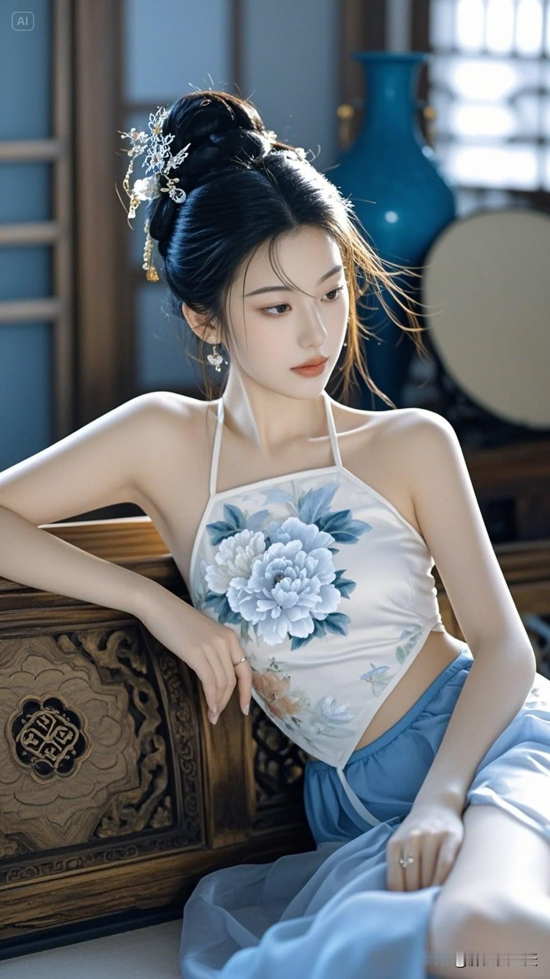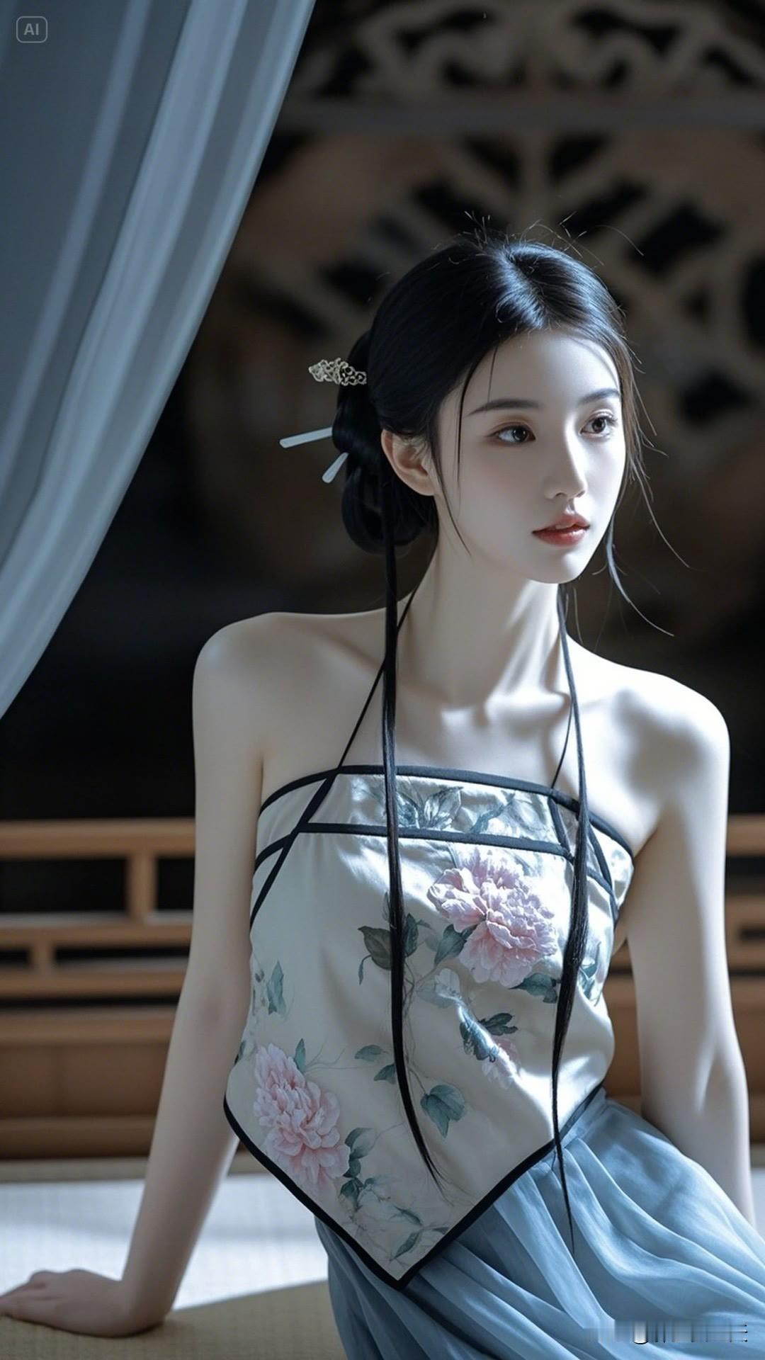 快看这位古装美女!乌发簪翠,黛眉含情,罗裙飘逸似流霞,她站在那,便是诗意古韵与绝