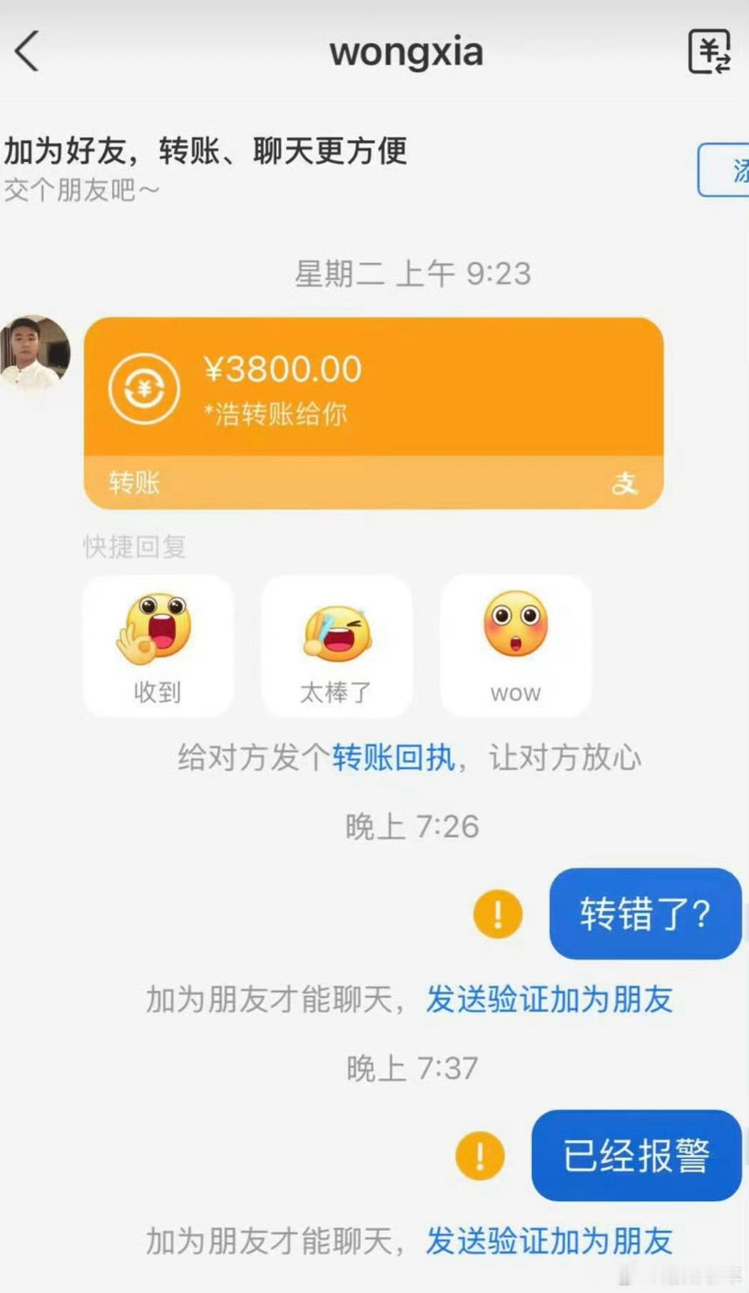 支付宝有人转三千到我的账号这种情况千万不要贪小便宜,万一这是洗钱你最轻也是封号!一定要及时联系警方!!!