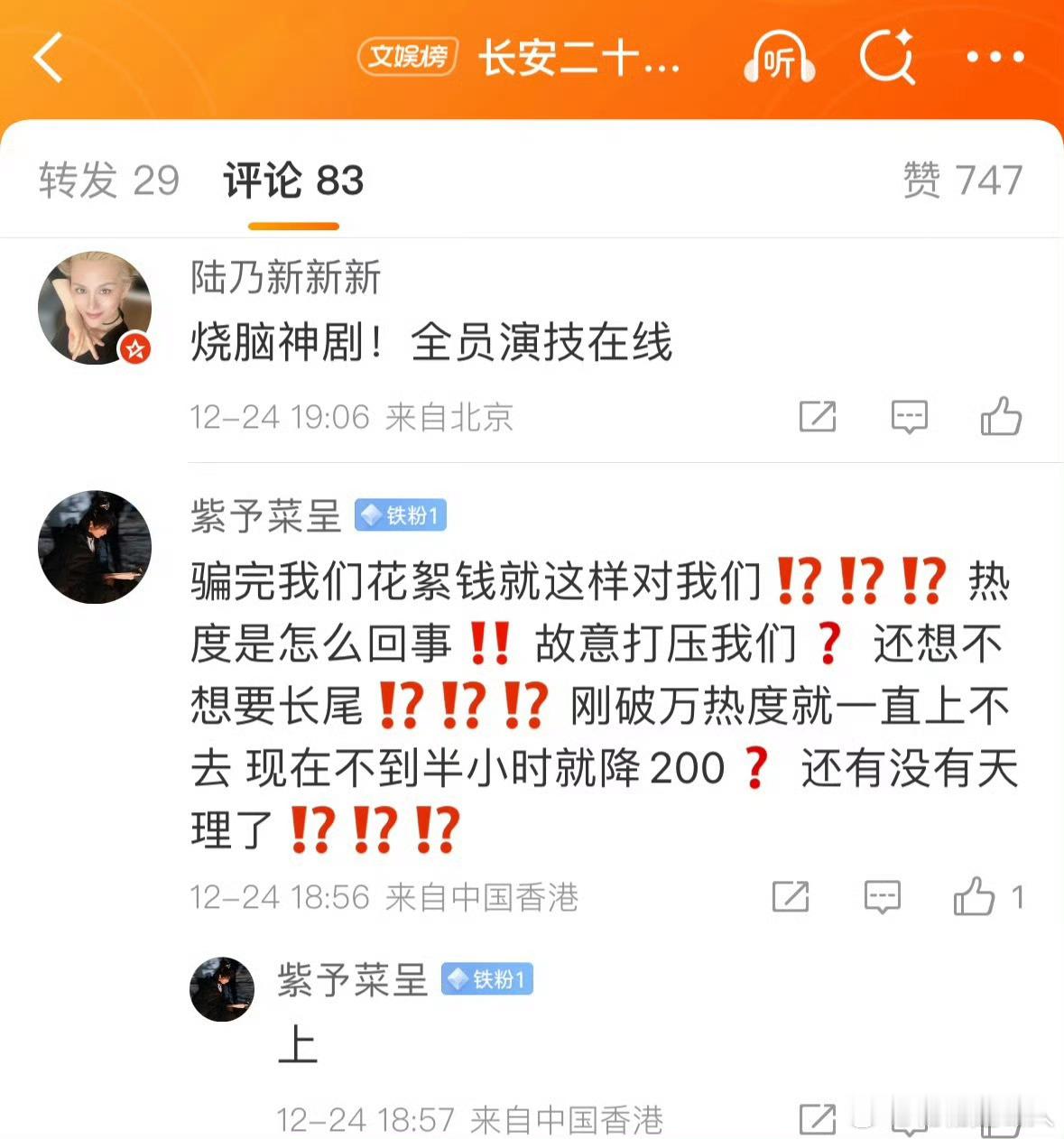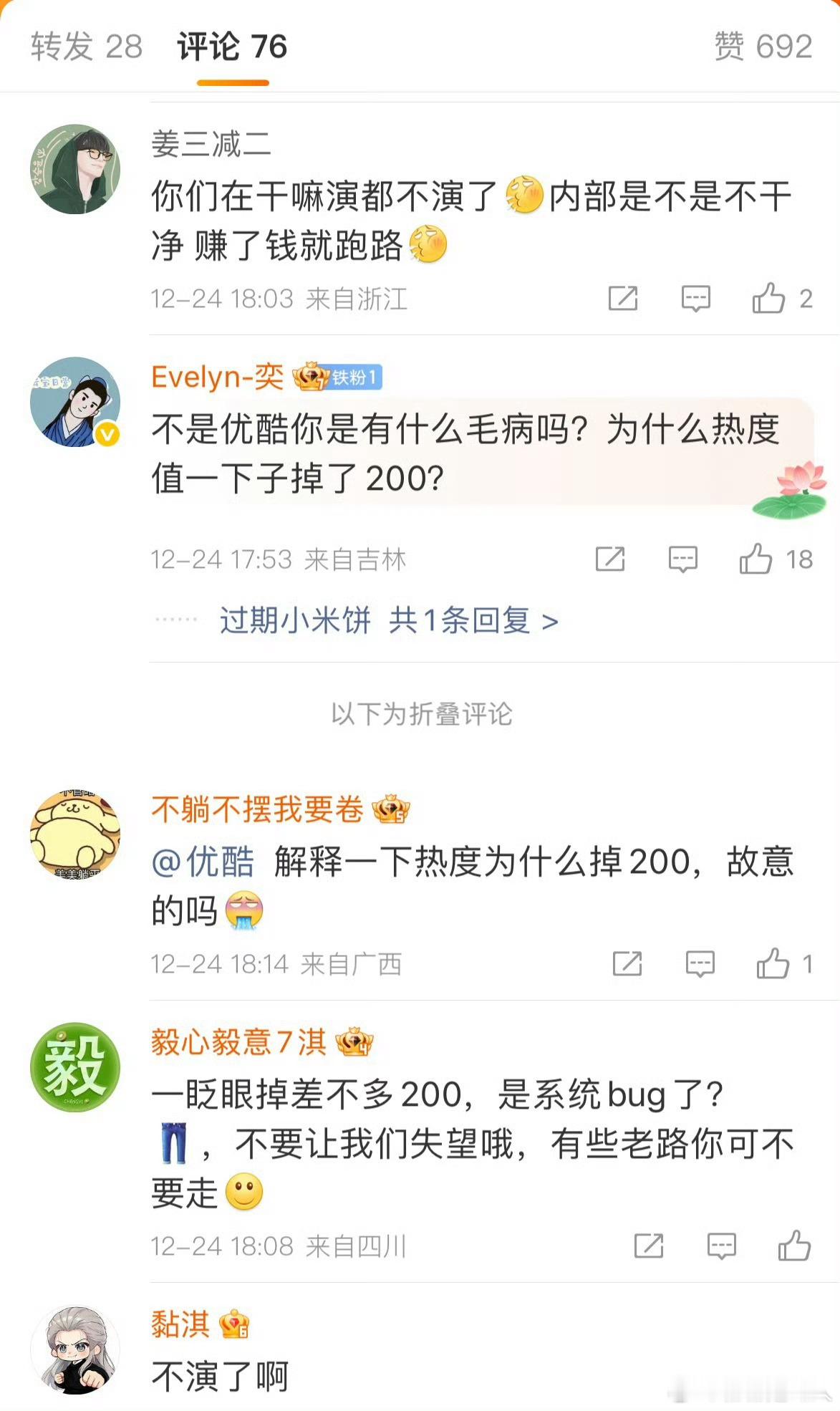 ……完成破w之后,热度火速下坠,之选下降,就说这个24计是纯粉丝剧没有观众入场吧