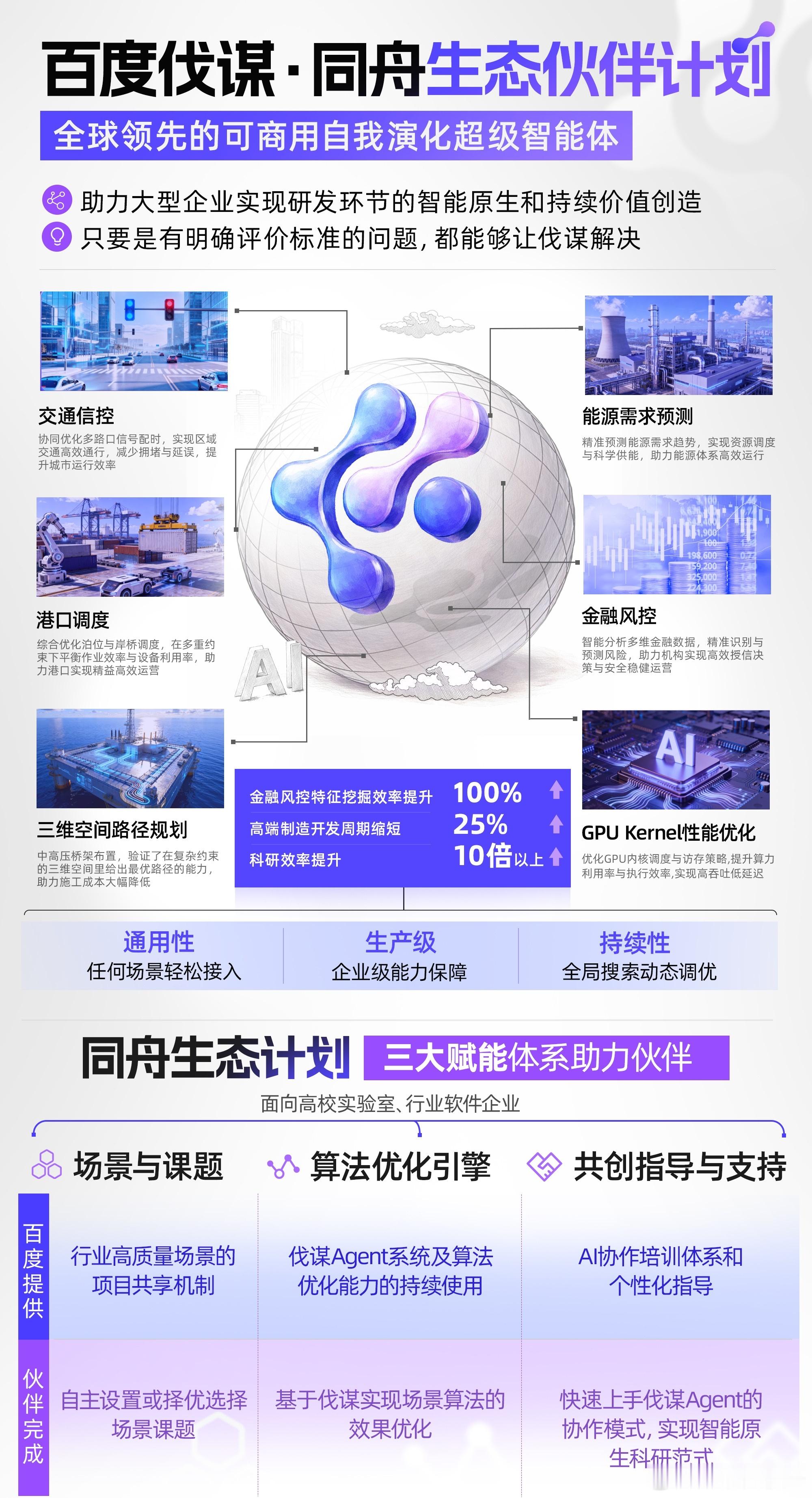 【上线一个月,超2000家企业申请使用?百度这一AI应用冲进产业深水区】当全球科技界热议AGI的宏大叙事时,中国AI正将目光投向更具实感的战场——工厂车间、科研实验室、港口码头与金融风控中心。百度最新推出的自我演化超级智能体“伐谋”,正是这场务实战役中的一把利器。发布仅月余,超过2000家企业的试用申请,验证了产业对“解决问题”的真实渴求。如今,伴随12月25日AI DAY活动上发布的“同舟生态伙伴计划”的启动,这把利器正被系统化地交到更多行业建设者手中。这标志着百度AI战略的一次关键深化,从打造标杆案例,转向构建赋能生态。“同舟生态伙伴计划”联合高校及行业伙伴,共享核心演化能力与产业场景,提供从工具到方法论的全程赋能。其目标清晰而具体——降低AI应用门槛,让各行各业都能快速掌握智能原生的工作范式,将顶尖的算法优化能力内化为自身发展的新质生产力。这一系列动作,与百度创始人李彦宏一贯坚持的“应用驱动”理念高度同频。区别于单纯追逐技术参数的竞赛,他始终强调AI的主战场在于解决真实世界的产业问题。中国庞大的制造业体系、复杂的城市治理场景与丰富的科研需求,构成了AI落地的独特沃土。“伐谋”的诞生与“同舟生态伙伴计划”的推出,正是对这一判断的生动实践——将技术势能精准转化为破解产业痛点的动能。这种转化的成效已清晰可见:在高端制造的前沿,百度与阿尔特汽车的合作,将空气动力学仿真从10小时的传统流程,压缩至“1分钟”的实时预测,使开发周期显著缩短。在科研创新的深水区,北京工业大学借助“伐谋”的自动化寻优能力,为中国空间站研发的监测设备找到了突破性的轻量化设计,将科研人员从繁复的“手动试错”中解放出来,转向更高维的科学探索。天津大学的研究团队利用“伐谋”强大的自适应演化能力,高效解决了灾害预测模型在不同地质场景间的快速迁移与优化难题,将模型选优周期从“周”缩短至“小时”,为防灾决策赢得了宝贵时间。“伐谋”正在多个关乎国计民生的关键领域,持续输出着可衡量、可感知的优化价值。李彦宏曾指出,企业需要构建“AI原生能力”。“伐谋”的产业化赋能,正是这一思想的延伸——百度不仅自身锻造了强大的AI引擎,更致力于开放共享,助力整个产业生态内化AI能力,共同进化。因此,“伐谋”与“同舟生态伙伴计划”的意义,远超一次产品迭代或市场活动。它们共同勾勒出一条以应用价值为锚点、以生态协作为路径的中国AI发展图景。当自我演化的AI能力与千行百业的深厚积淀深度融合,我们看到的不仅是效率的提升与成本的优化,更是一场由技术务实主义驱动的、深刻的产业智能化变革。这或许正是中国AI在这场全球竞赛中,所展现出的独特智慧与战略定力。$百度 BIDU$
