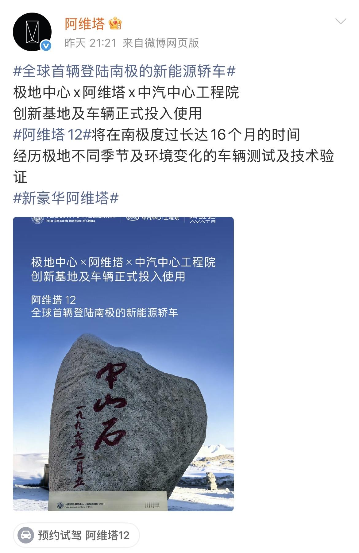阿维塔的一条信息引起了大家的误解。 起因是阿维塔在12月8日发布信息称,阿维塔12抵达南极,作为全球首辆登陆南极大陆的新能源轿车直面零下50摄氏度的考验。 有人怀疑阿维塔虚假宣传,因为南极现在是夏季,温度根本没有零下50摄氏度,怎么进行极寒考验。 在昨天,阿维塔回应公众关切称,阿维塔12将在南极度过长达16个月,会经历南极春夏秋冬四季。 言外之意就是,前面说的直面零下50摄氏度并没有说现在就去面对,在南极大陆冬季来临的时候,阿维塔12就会直面极寒低温的考验。 之所以会引起大家的误会,是因为之前没有说清楚。 所以,企业在宣传产品的时候还是要注意方方面面,不要引人误解。