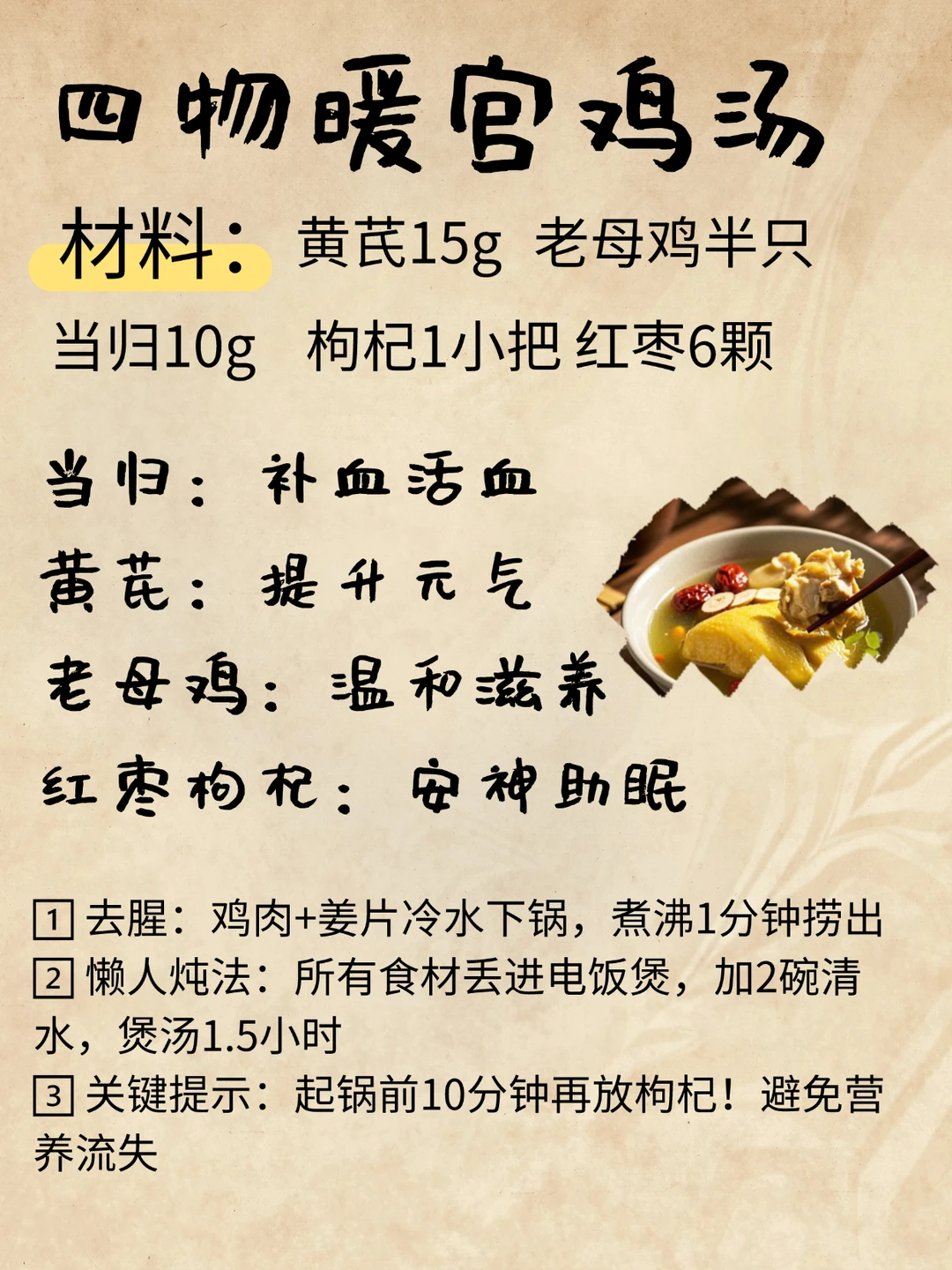 凌晨3点被汗湿醒的姐妹举手🙋♀️! 试遍褪黑素都没用?中翳科主任私藏的【四物暖宫鸡汤】来了! 当归活血+黄芪提气,电饭煲一键搞定👌✅ 月经后加藏红花 ✅上火体质换麦冬 连喝3周亲测:潮热从每天5次降到1次💦,深睡多1.5小时💤! 👇点收藏→下周教你把汤渣做成鸡丝粥 “姐姐们更年期最难熬的是什么? 拥抱我的身体信号 养生 食养 失眠 失眠焦虑 更年期 睡不着 睡不着怎么办 正式确诊为健康人