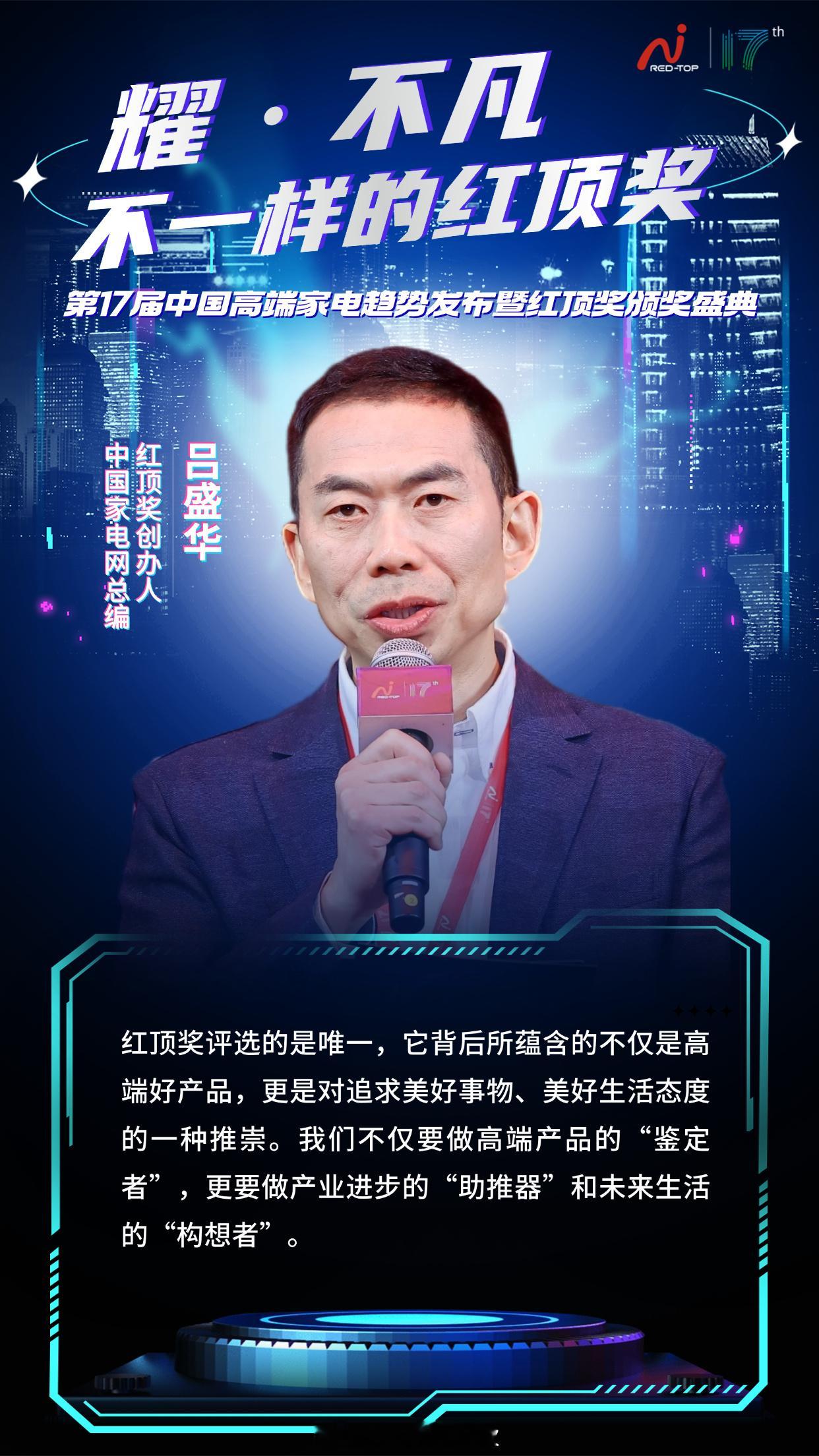 第17届红顶奖圆满收官!嘉宾们的犀利观点点亮行业趋势,一组嘉宾金句图带你速览精华!首钢园见证红顶奖盛典!嘉宾金句直击高端家电产业升级与品质生活初心红顶奖
