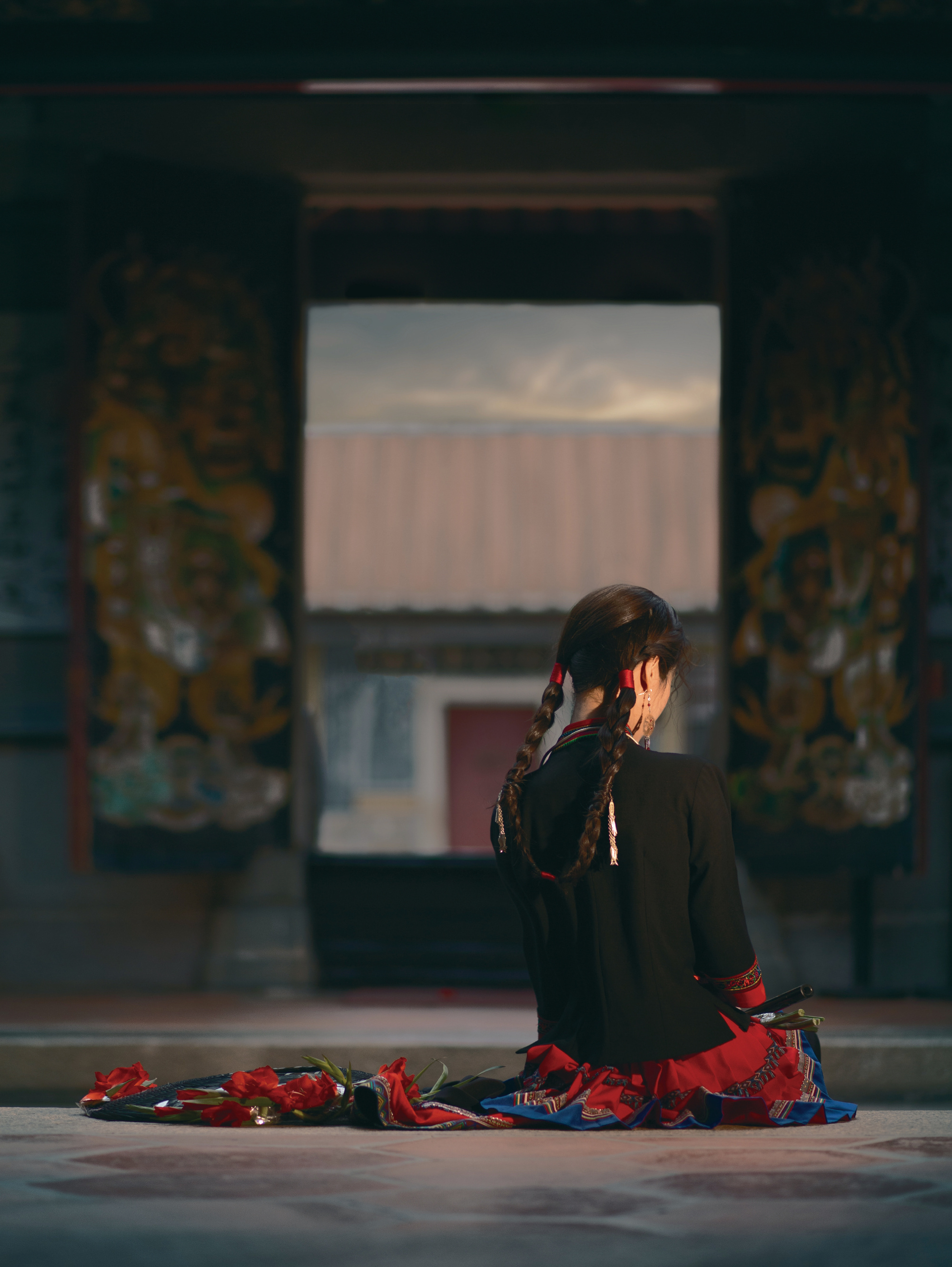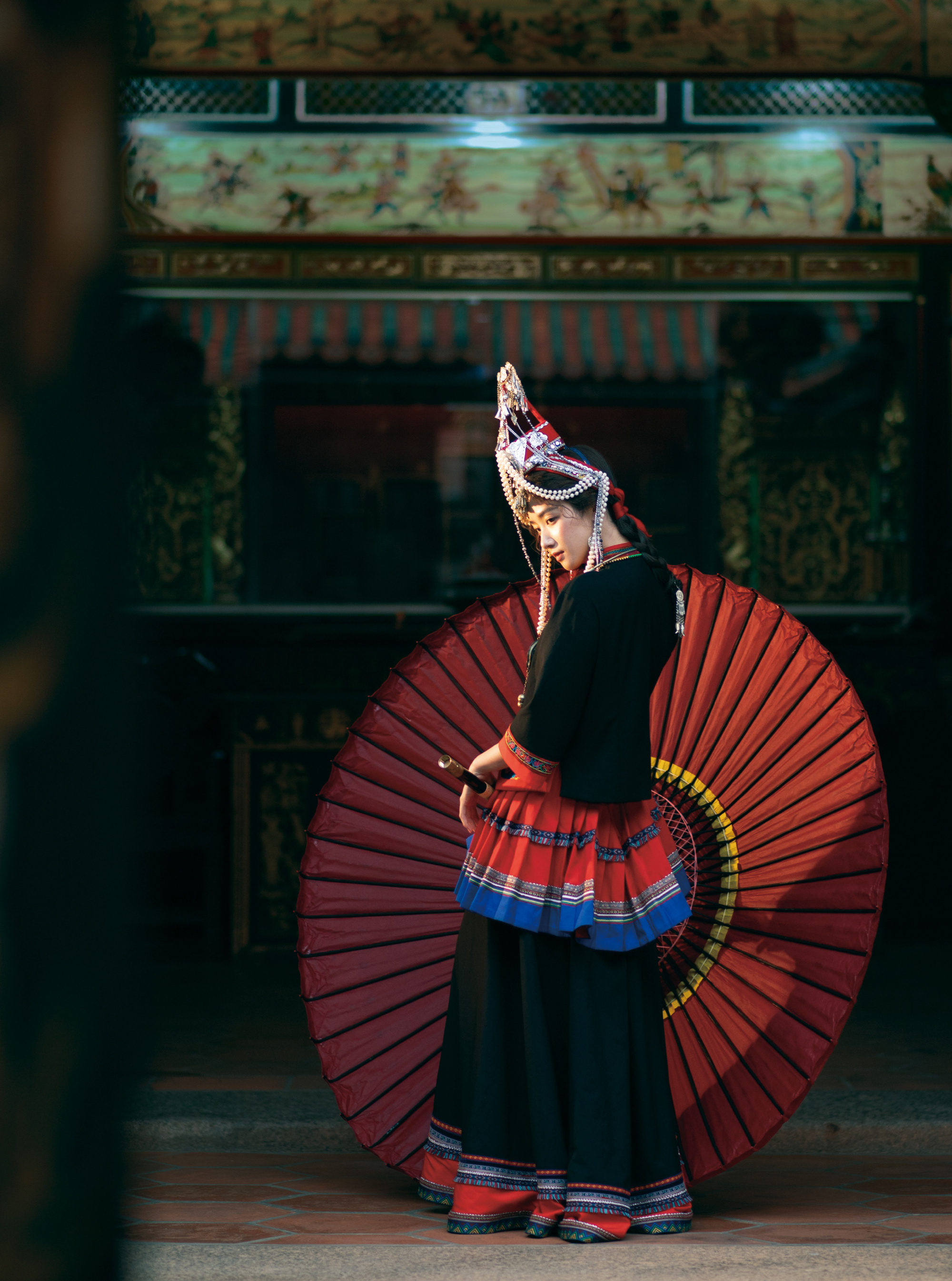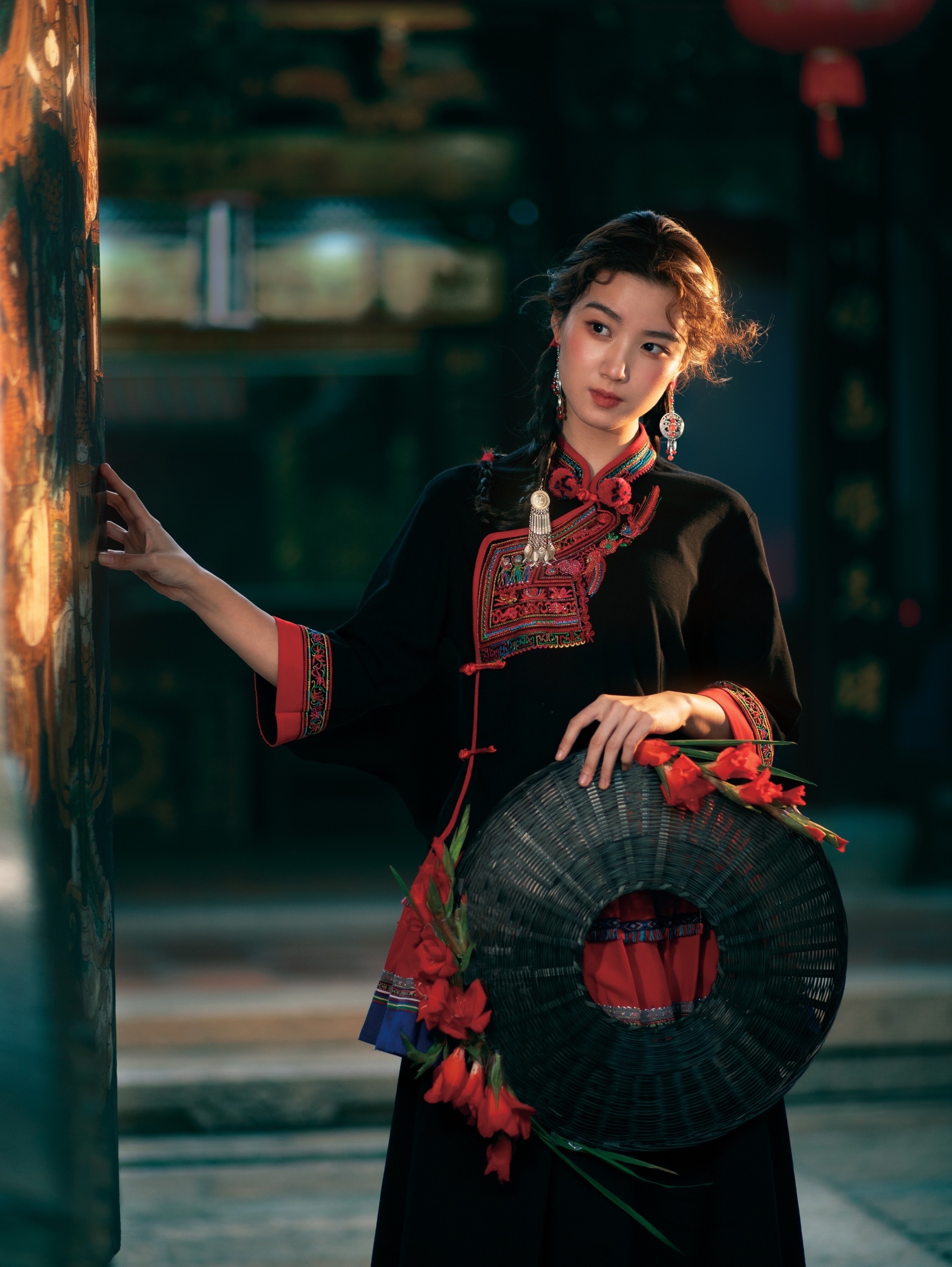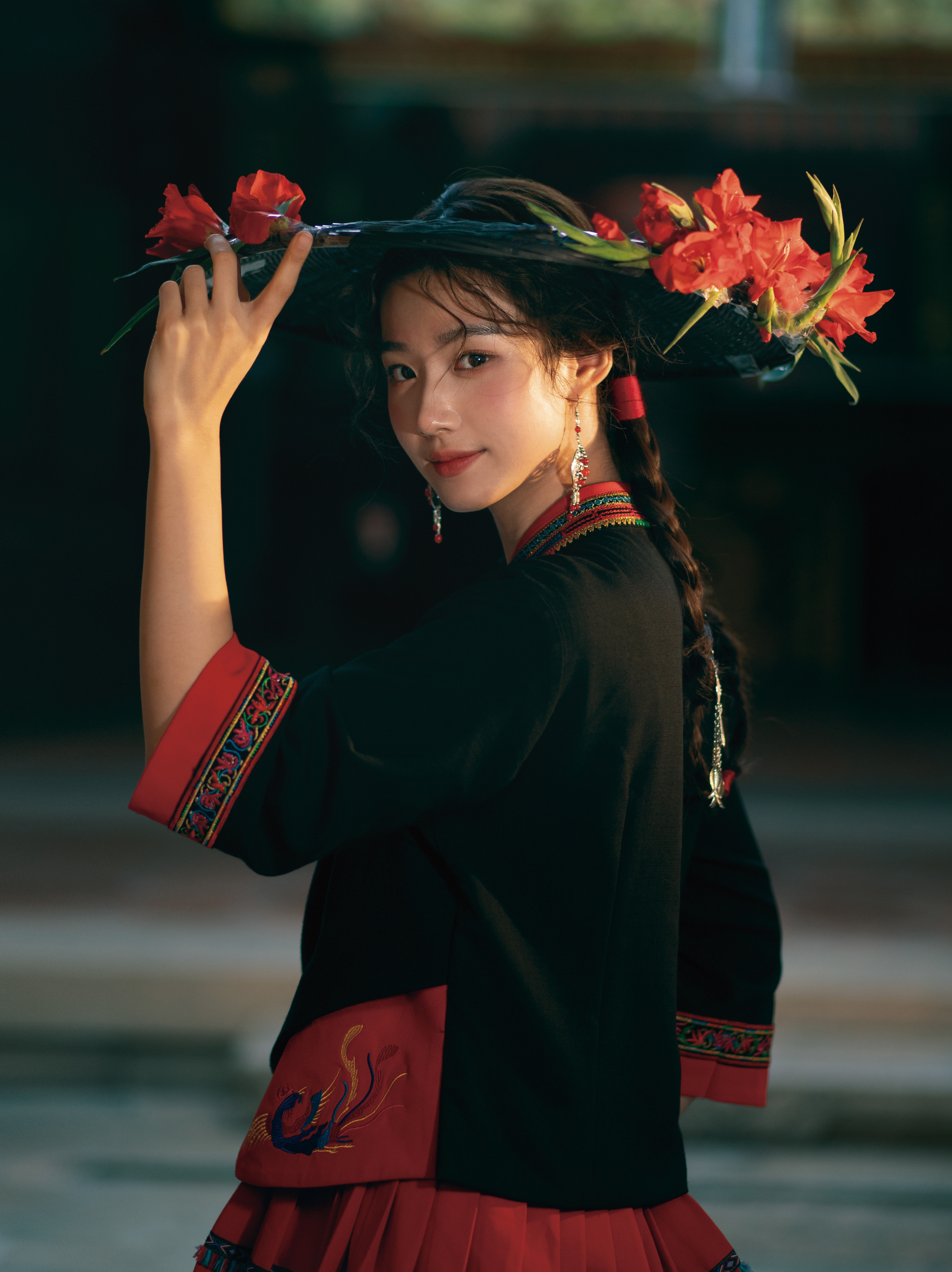 卢昱晓畲族服饰写真 在重峦叠嶂的纹样里,循着迁徙的山路与星辰。噜噜晓古韵十足。卢昱晓畲族造型 好有画面感。卢昱晓