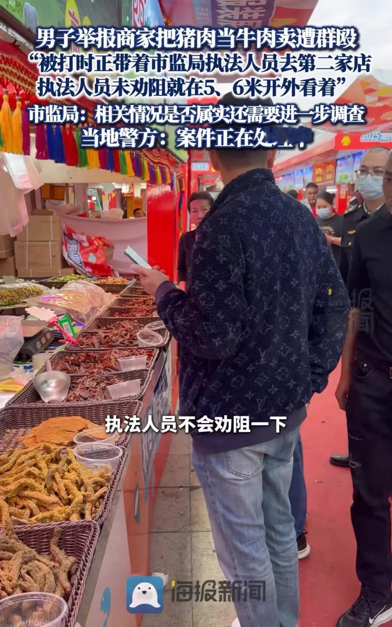 12月23日广东潮州曝出的一起举报者被围殴事件,让网友直呼“太嚣张”。一名男子因发现摊贩将猪肉冒充牛肉售卖,选择跟随市监局执法人员前往现场举报,不料在前往第二家涉事店铺的过程中,遭到六七名人员的暴力围殴。 男子被打时,市监局执法人员就在五六米开外的位置,却未上前劝阻,只是在一旁看着。这场暴力袭击让男子身受重伤,耳朵被缝十余针,两根肋骨骨折、肺部挫伤,经鉴定为轻伤二级,躺在病床上的他还需依靠吸氧设备维持呼吸。 事件曝光后,市监局回应称相关情况是否属实仍在进一步调查,当地警方则表示已抓获5名涉案人员,案件正在持续侦办中,后续全部涉案人员也已被刑拘。 这起事件的核心矛盾,不仅是摊贩售假后报复举报者的违法行径,更在于执法人员在场时的不作为。网友纷纷质疑,执法人员的职责本是维护市场秩序、保护群众权益,却在举报者面临人身危险时袖手旁观,既让举报者的善意寒了心,也让执法的公信力打了折扣。 而摊贩明知有执法人员在场,仍敢公然对举报者施暴,更是无视法律的嚣张表现。售假本就违反市场监管规定,暴力伤人更是触及法律红线,双重违法的行为,必然要受到法律的严厉惩处。 目前案件虽已进入侦办阶段,但网友更关注的是,执法人员的失职是否会被追责,以及该如何完善举报保护机制,避免再出现“举报者维权反遭伤害”的情况。毕竟,只有让正义得到守护,让违法者付出代价,才能让更多人敢于站出来维护市场的公平与诚信。 殴打事件