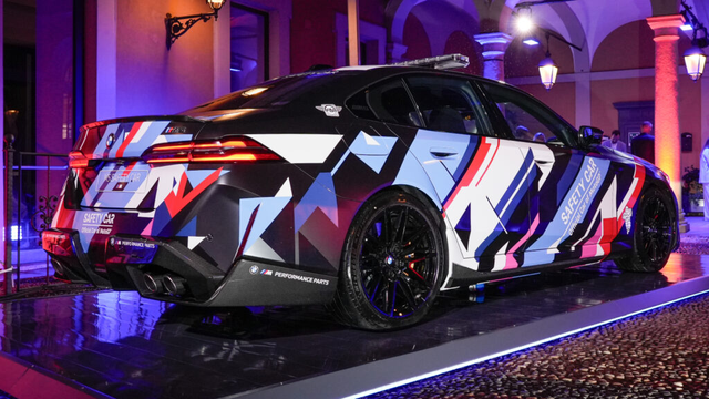 宝马作为MotoGP赛事历届以来的合作伙伴,过去推出的M2、M3、M4、1M、M8甚至是XM等性能款车型,都曾担任该赛事的赛道安全车。直到最近,双方再度推出全新版本的安全车M5,不仅选用颇为霸气的消光黑车漆,外观涂装也向宝马 M Power致敬,使用招牌的蓝、靛、红三色调进行设计,配上车顶的高亮度警示灯,整车的竞技氛围相得益彰。