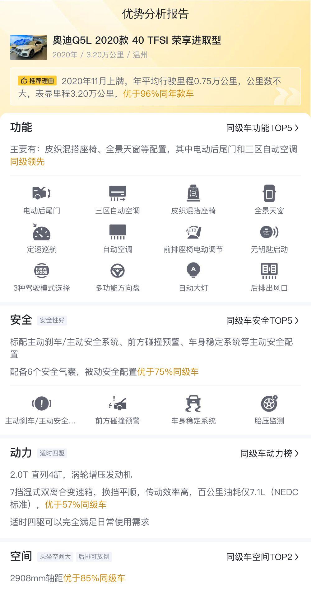 最后,我们再来回顾一下这辆Q5L的几个关键信息:2020年11月上牌,行驶里程3.2万公里,一次过户,报价17.38万。这些信息都比较透明,也比较符合市场行情。