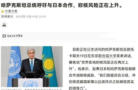托卡耶夫这一番讲话,高市早苗估计脸上都挂不住了!托卡耶夫黑不提白不提,偏偏在日本国内传出要拥核的时候,呼吁要与日本在消除核威胁方面合作!就在12月20日,正在日本访问的哈萨克斯坦总统托卡耶夫,在当地一所大学发表讲话,直言世界各地的核风险正在再次上升。   12 月的日本东京,一场看似热络的外交访问背后藏着暗涌。   哈萨克斯坦总统托卡耶夫带着合作诚意到访,高市早苗政府拿出了最高规格礼遇,天皇亲自接见,双方一口气签下 14 项合作协议,涵盖矿产、农业、基建等多个领域,核心就是日本急需的稀土资源供应保障。   高市早苗心里打的算盘很明白,想借着这些合作把哈萨克斯坦乃至整个中亚拉到自己这边,给自己的外交版图添砖加瓦。   托卡耶夫当然看穿了这层心思。哈萨克斯坦在大国之间游走多年,早就摸清了地缘博弈的门道,怎么可能轻易被绑定站队。   这次访日,他们想要的是实打实的经济利益,日本的资金和技术能帮着开发国内丰富的矿产资源,而日本离不开他们的稀土,这种相互需求的合作才是根本。   但合作归合作,原则问题绝不含糊,托卡耶夫早就准备好在关键问题上亮明立场。   就在双方合作协议墨迹未干之际,托卡耶夫在日本一所大学的公开演讲中,直接戳中了日本的敏感神经。   他当着日本民众的面提到,现在全球核风险正在上升,呼吁和日本一起为消除核威胁而合作。   这话听得高市早苗阵营坐立难安,因为就在几天前,日本首相官邸的核心安全官员刚公然喊出 “日本应该拥有核武器”,引发轩然大波后,内阁不仅没严肃处理涉事官员,防卫大臣还跟着暗示要考虑核动力潜艇,明摆着是在试探国际社会的底线。   更让日本难堪的是,他们的核野心早就藏不住了。   作为二战战败国,日本本该铭记历史教训,却一边每年举办和平纪念活动,哭诉自己是核爆受害国,一边偷偷囤积了 47.8 吨分离钚,其中 10 吨是能直接造核弹的武器级材料,理论上能造出 6000 多枚核弹,比不少核大国的库存还多。   11 月刚在联合国提交 “消除核武器” 的决议,转头就纵容高官喊拥核,这种两面派做法连本国民众都无法接受,长崎的核爆受害者团体直接痛斥,东京、广岛等地更是爆发数万民众参与的抗议活动,要求停止军扩。   日本的拥核企图,早就引起了周边国家的高度警惕。   中国外交部明确表示要警惕日本右翼复活军国主义的野心,俄罗斯不仅通过外交渠道严厉警告,还在南千岛群岛部署导弹形成威慑,朝鲜更是直接痛斥日本是 “战犯国家”,必须制止其危险的军事妄想。   就连盟友美国,也只是口头安抚,心里清楚一个拥核的日本迟早会摆脱控制,绝不会真正纵容。   现在韩国已有很多的民众支持自主拥核,朝鲜也重启了核设施,日本要是敢迈出拥核的实质性一步,必然会引发东北亚核竞赛,整个地区的安全平衡将彻底被打破。   国际社会也不会坐视不管,《不扩散核武器条约》和战后国际秩序都不允许战败国随意突破核红线,日本要是执意为之,只会被全球孤立。   托卡耶夫的一番话,不仅是给高市早苗提了醒,更是给所有国家敲响了警钟。   历史已经证明,核武器带来的只有灾难,哈萨克斯坦主动弃核就是因为深知这一点。   日本如果继续无视历史、淡化罪行,一门心思发展核武器,终将遭到更多国家的打压和抵制,最终反噬自身。   和平从来不是靠囤积武器换来的,尊重历史、坚守底线才是立足之本。   那些试图突破和平红线的野心,终究会被正义和良知所遏制。   历史的警钟长鸣,和平的红线碰不得,这是所有热爱和平的国家和人民的共同心声。