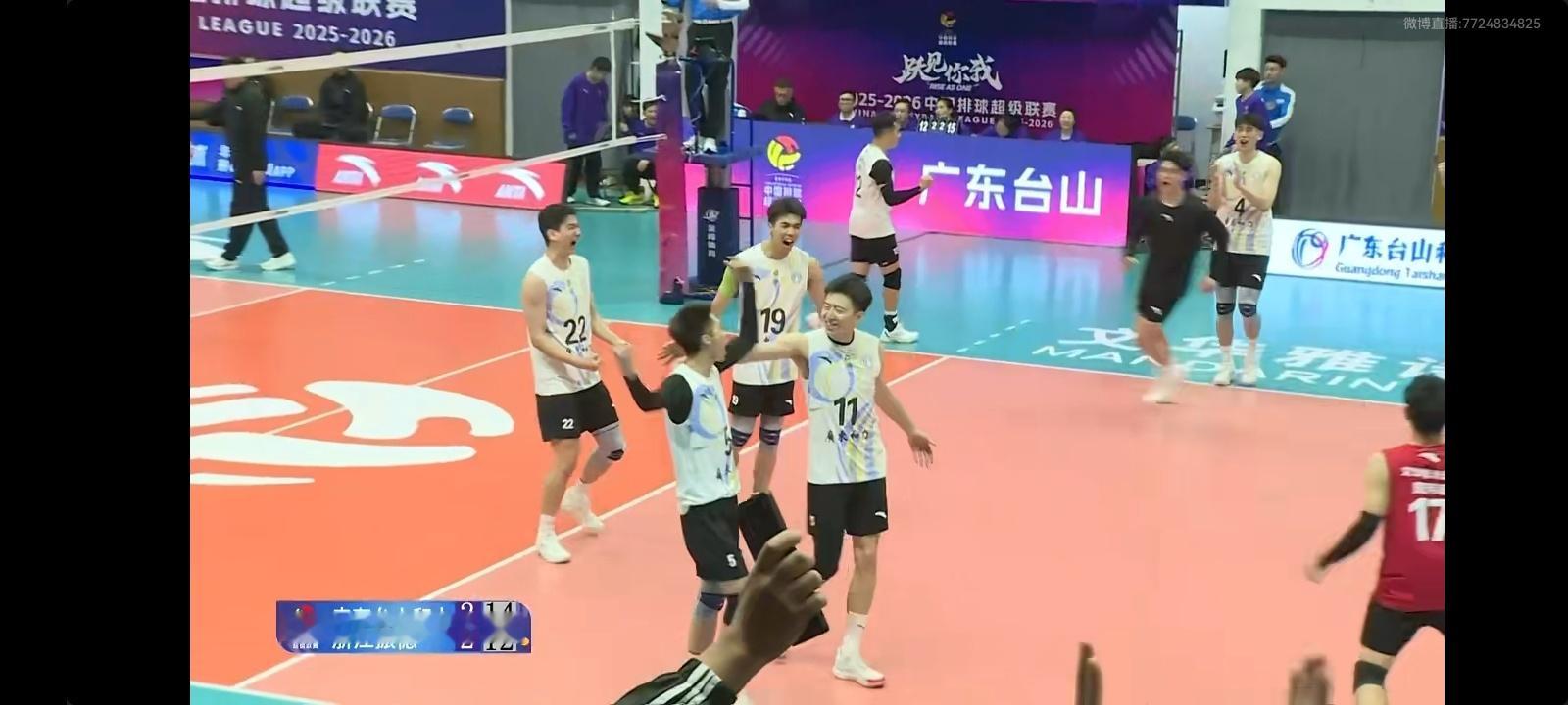 广东台山男排3比2浙江男排,第五局中段王鹤斌那一轮发球反超,局末换20号发球抓拦防奏效,浙江这边第五局被反超后有点士气往下,然后还没缓过来比赛结束了!广东四连胜有三个3比2,你要当五局王吗排超联赛排球中国男排中国男排