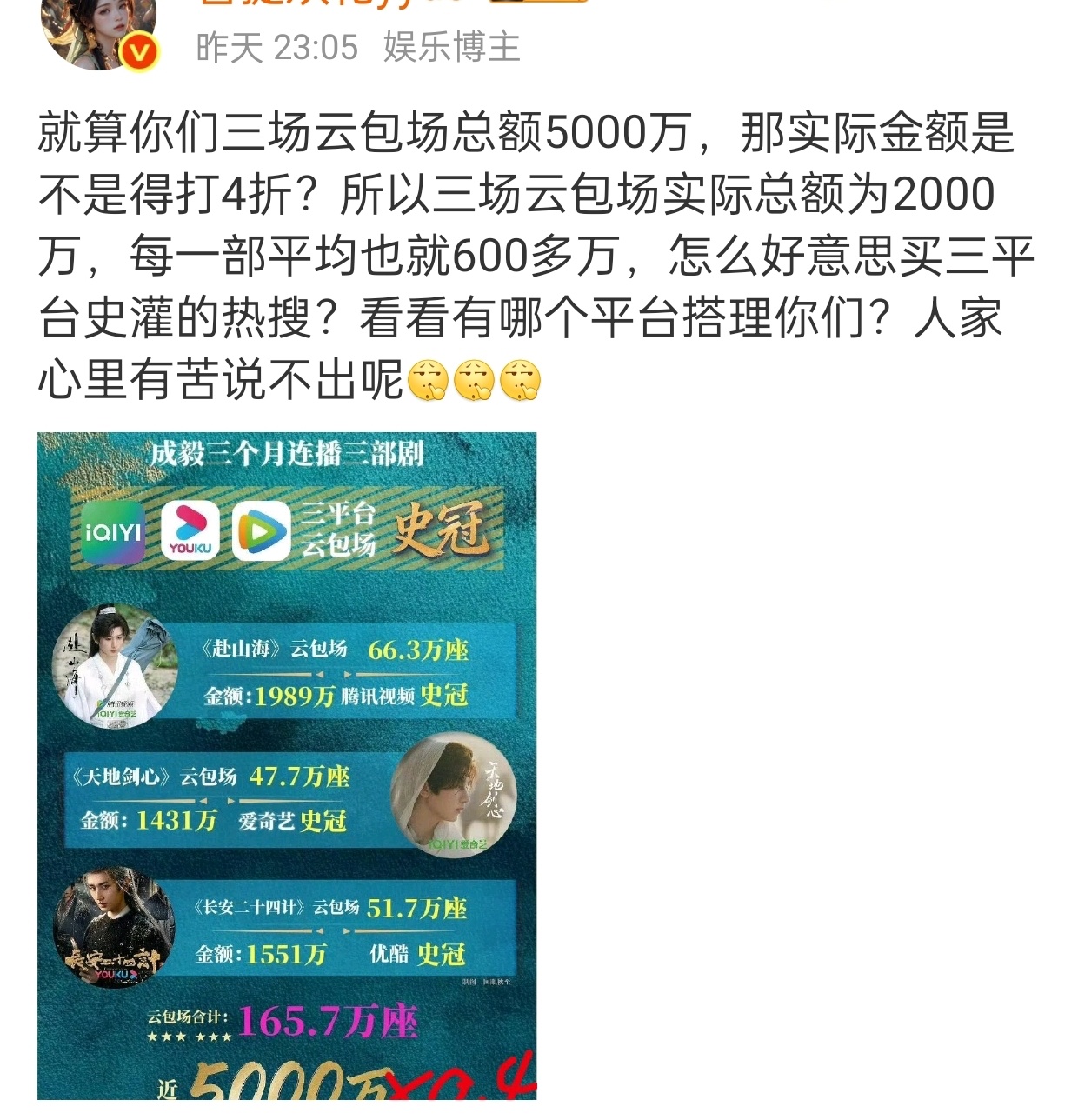 IE把打折云包场甩给xz粉丝。奇怪了,藏海传播完不出购买战报,24季播完出藏海传