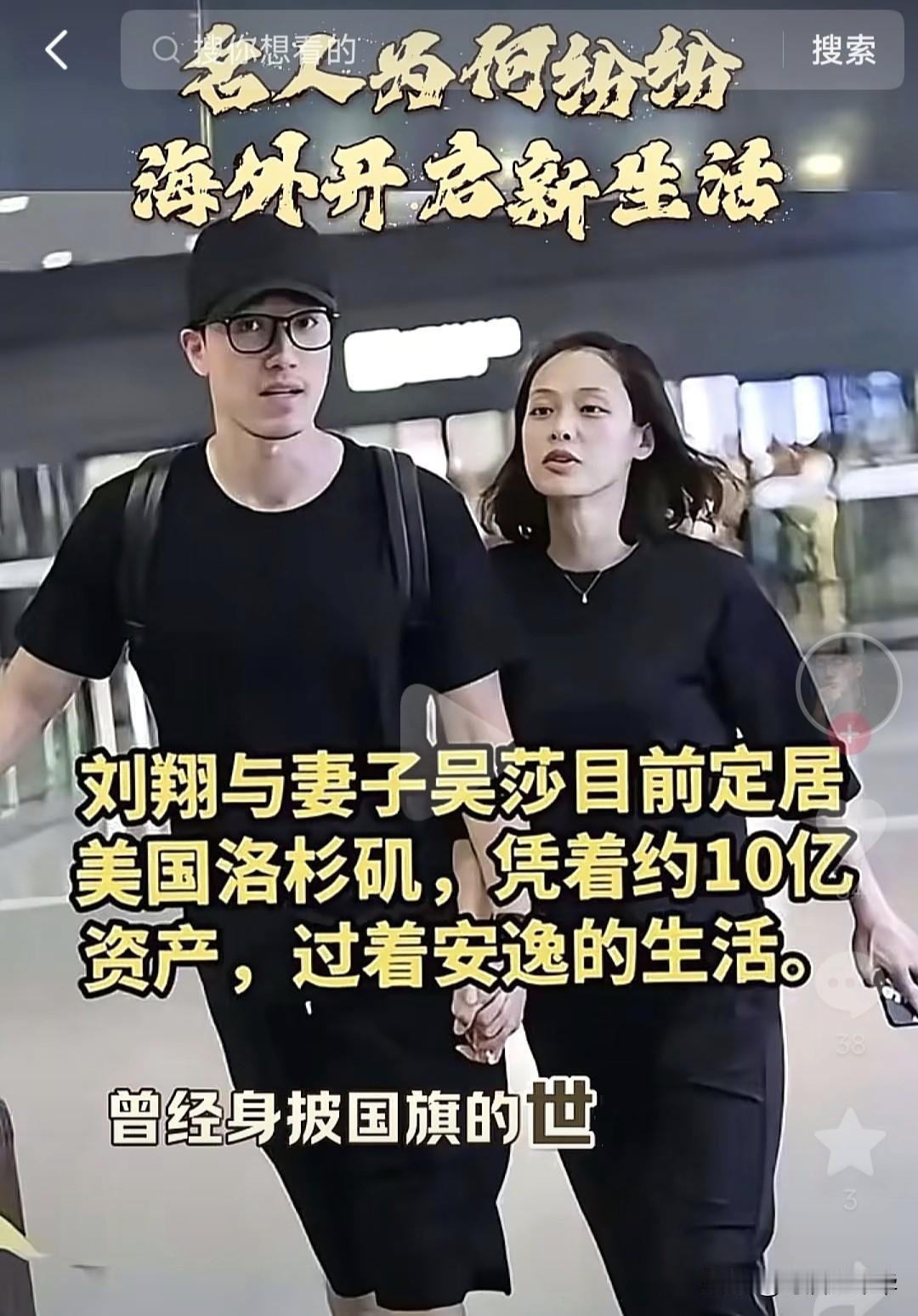 刘翔也移居美国了,奥运冠军刘翔凭借约10亿的资产,在美国洛杉矶和妻子过着安逸的生活,奇怪的是这次大家没有对其进行口诛笔伐,好像已经习惯了。