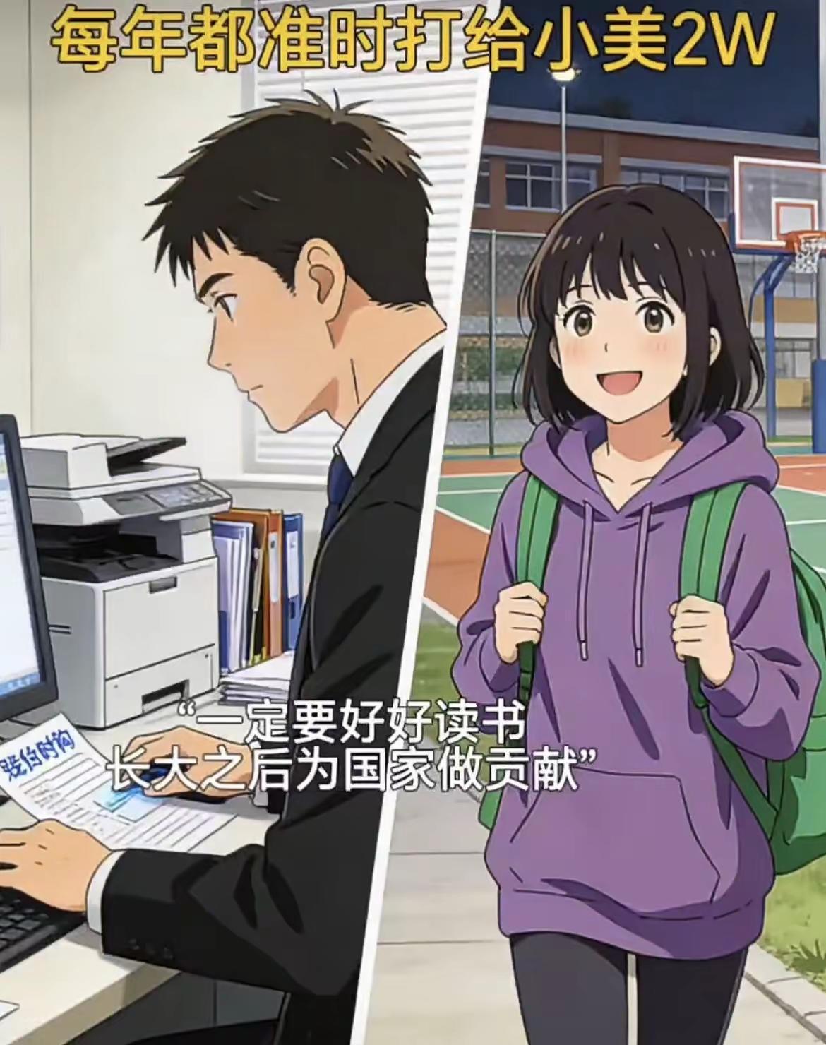 “ 每个家的状况不一样,单亲家庭的孩子 总是那么早早的担起责任了,照顾妹妹了 ”