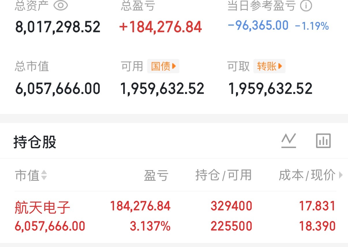 玲珑的航天电子进了一点仓,粉丝朋友们,这是玲珑的记录,大家不要乱跟