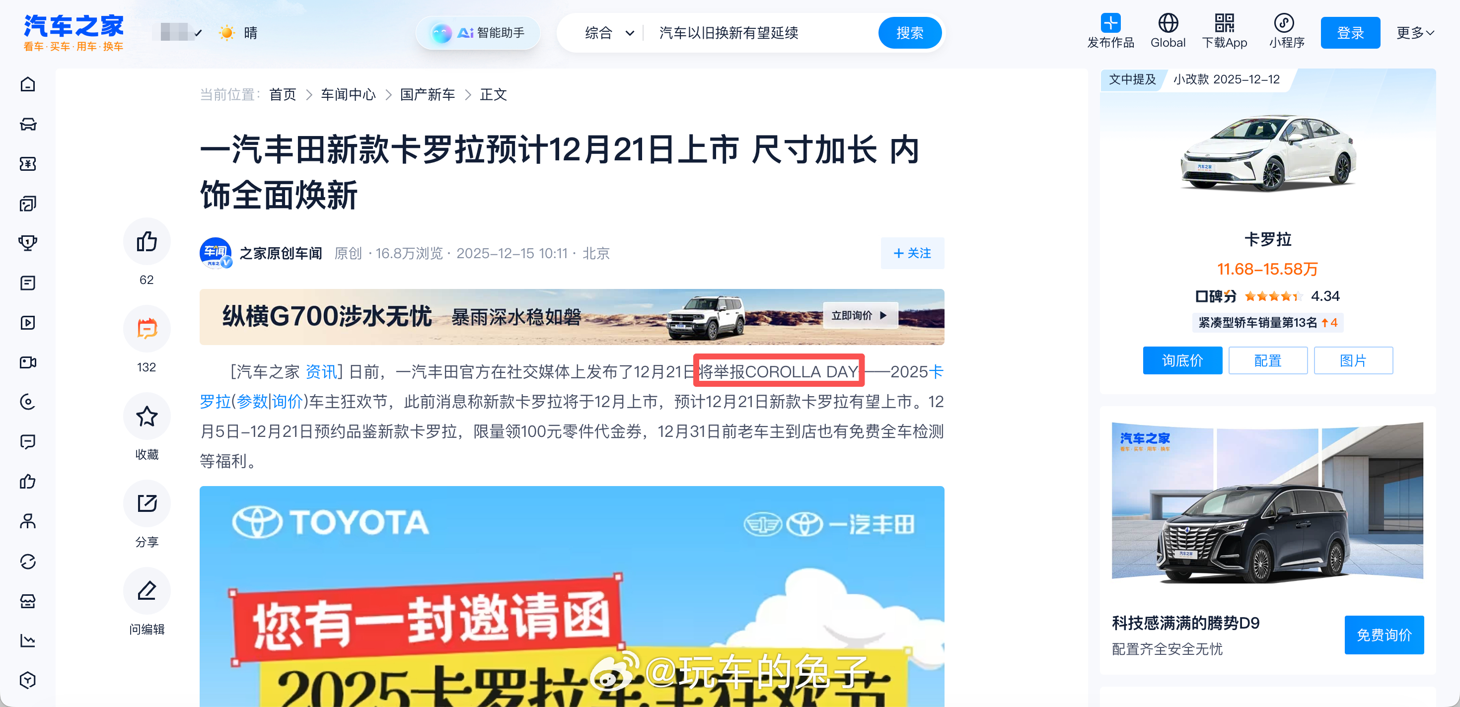 开头就是个错别字,发布十几天了都没改,某车之家现在编辑也是越来越躺了……汽车我与汽车的日常