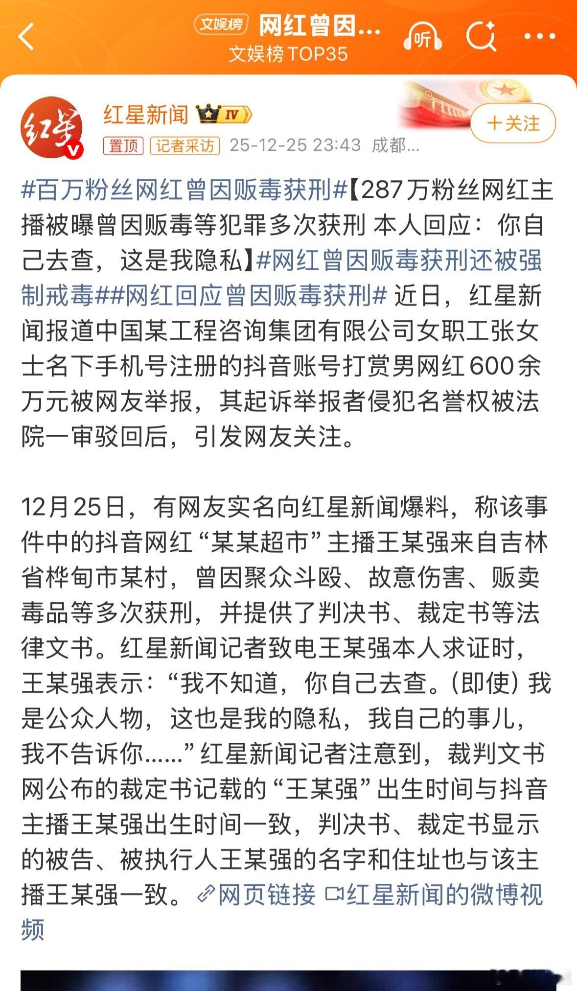 网红曾因贩毒获刑还被强制戒毒以后是不是都查不到了。然后,这些干过黄赌毒或其他坏事的人,占着群众查不到,更加理直气壮。“你去查”说不定还暗搓搓的心里默念:查到算我输 。