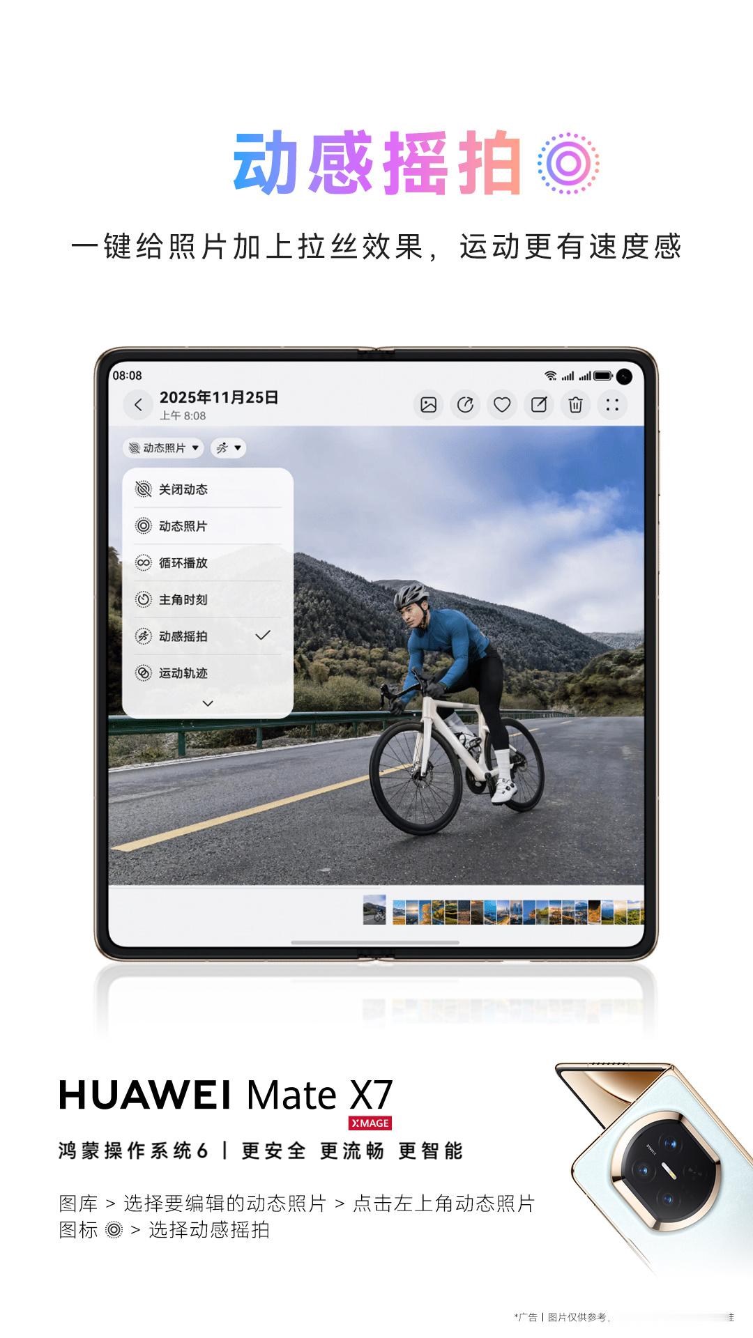 自带手机支架、自带构图助手,自拍还能提前预览效果,Mate X7想要拍出好看的照片也太简单了!