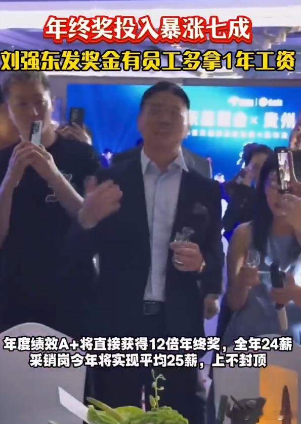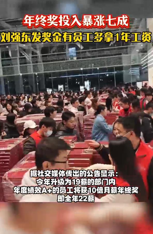 刘强东发奖金有员工多拿1年工资 一年的最后一个月,又是惊喜的到来,你们的年终奖到手了吗?真令人羡慕。