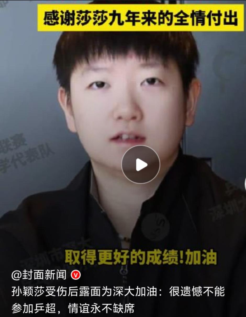 孙颖莎伤后首露面,为队友送祝福。 2025年12月26日,就是今天,就是刚刚:我们可爱的莎莎发视频与大家见面啦! 视频中莎莎气色红润,精神状态不错,看来身体恢复得比大家预期的还好! 莎莎通过视频给即将举行的“乒超联赛总决赛”(12月26日至28日,南京)的深圳大学队队友送上祝福,并表示:“很遗憾不能来到赛场和大家并肩拼搏”。 2026,期待莎莎满血归来,为国争光,为己添荣!