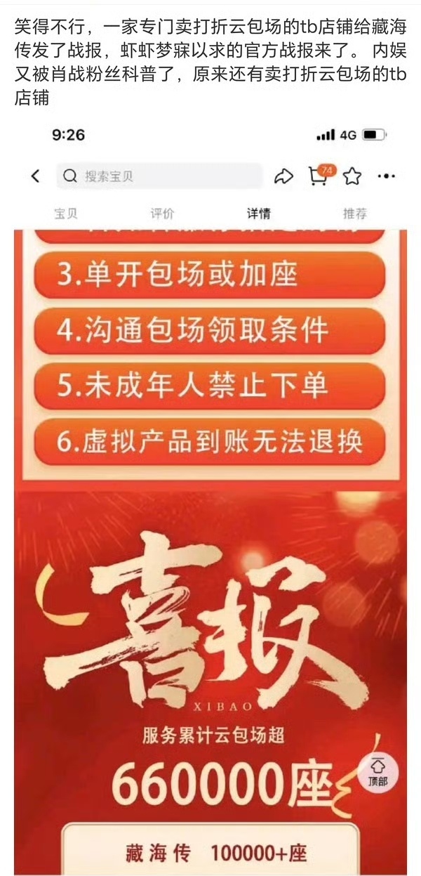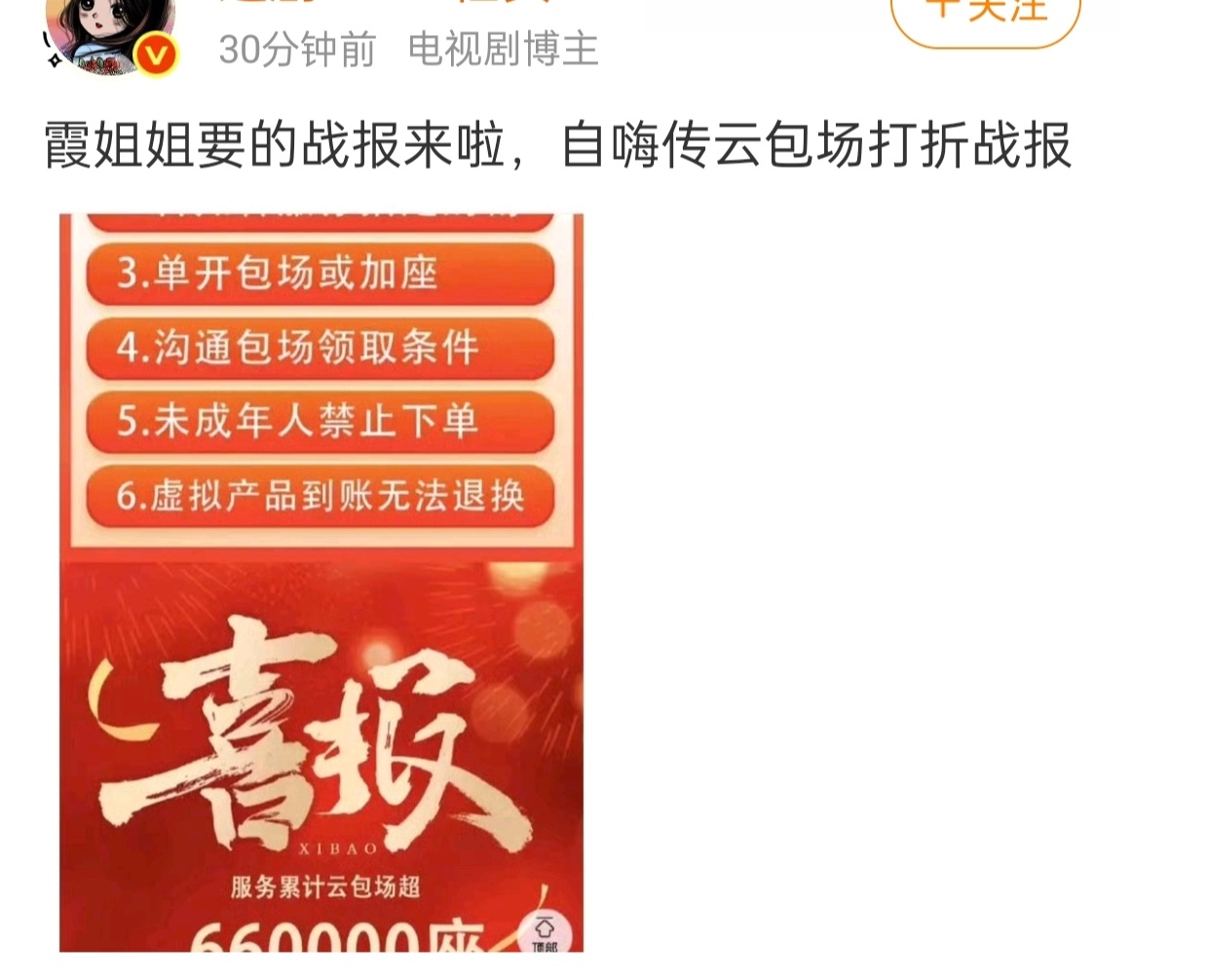 IE把打折云包场甩给xz粉丝。奇怪了,藏海传播完不出购买战报,24季播完出藏海传战报