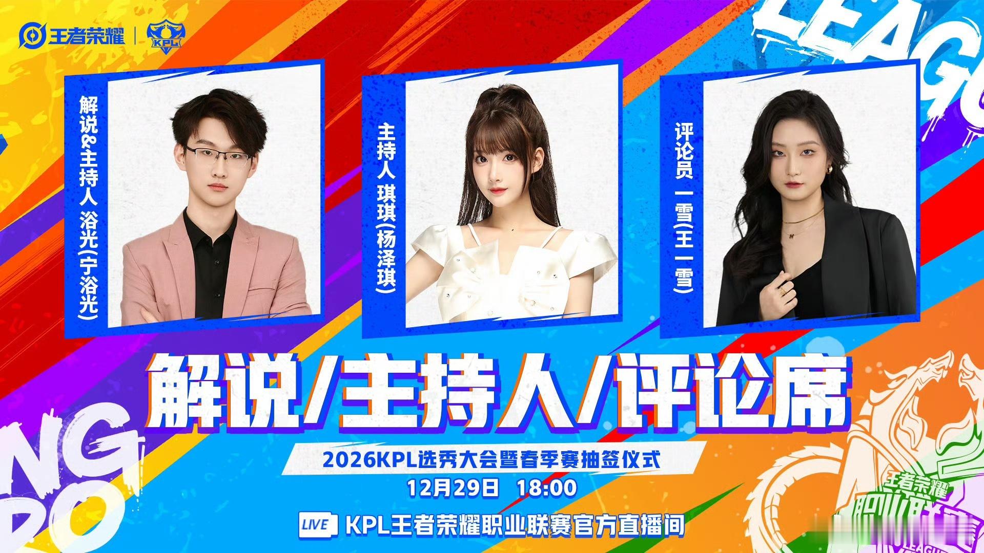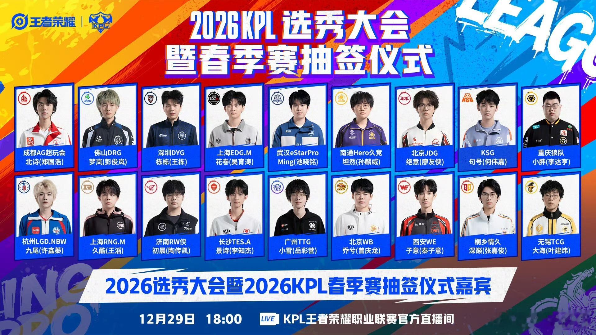 2026KPL选秀大会2026KPL春季赛抽签仪式 12.29 18:00选秀大会&抽签仪式