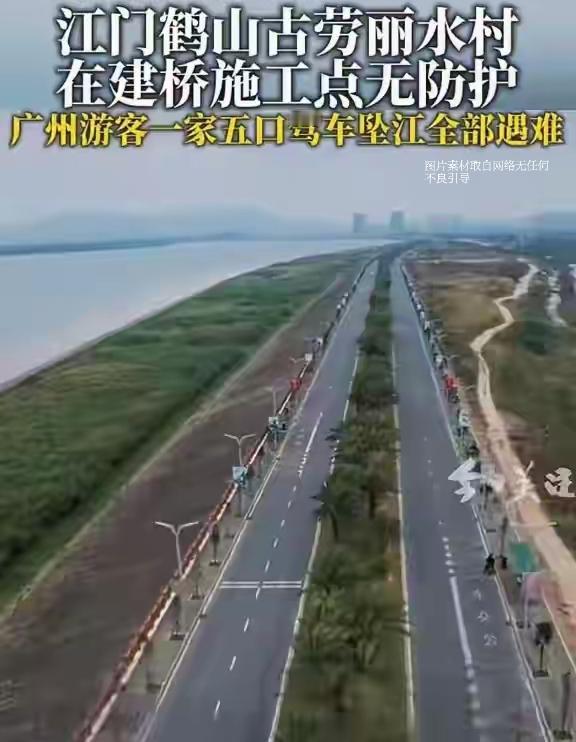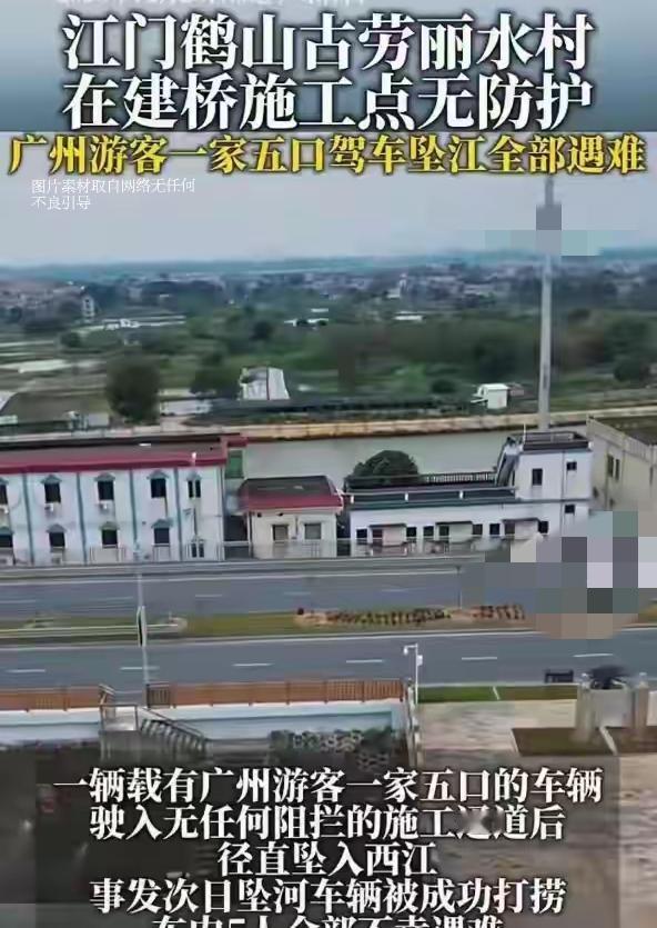 痛心!广州一家5口自驾游坠江遇难,130亿重点工程竟连基本防护都没有? 12月13日傍晚,广州一家5口自驾途经江门古劳镇西江特大桥施工点时,车辆冲入无任何防护的施工便道,坠入西江,4大1小全部遇难,这场本可避免的悲剧,刺痛了无数人的心。 事发时,这家人正开心出游,傍晚途经该施工区域。据村民透露,这条临时便道本应封闭管理,却仅用几个水马和胶纸简单遮挡,既没有栏杆、警示灯,也无专人值守,与普通马路无异,傍晚光线不足时极易误闯。 桥下工人发现后立即报警,但因江水湍急,救援人员只能眼睁睁看着水面翻腾,直至次日车辆才被打捞上来,5条鲜活的生命已戛然而止。 令人愤怒的是,这并非突发隐患。周边村民表示,该施工点管理松散已有大半年,安全隐患早已被多次提醒,却始终无人整改。更讽刺的是,这座总投资130.63亿元的省级重点工程,设计双向六车道,原计划四年完工,却连几千元就能安装的围栏都舍不得投入,安全管理形同虚设。 事故发生后,施工点才紧急停工,用水马将通道封了两层,这种“亡羊补牢”的操作,让网友们怒不可遏。大家纷纷质疑:130亿的投资究竟花在了哪里?监管部门的职责何在?施工方的安全底线又在哪里? 目前,当地镇政府已介入处理后续事宜并承诺追查责任,但逝去的生命再也无法挽回。这场悲剧究竟是施工方的全责,还是司机也有疏忽?对于大型工程的安全监管,我们还能做些什么?欢迎在评论区说出你的看法。施工方失职,5条生命瞬间消逝 临时便道无防护,谁为生命负责