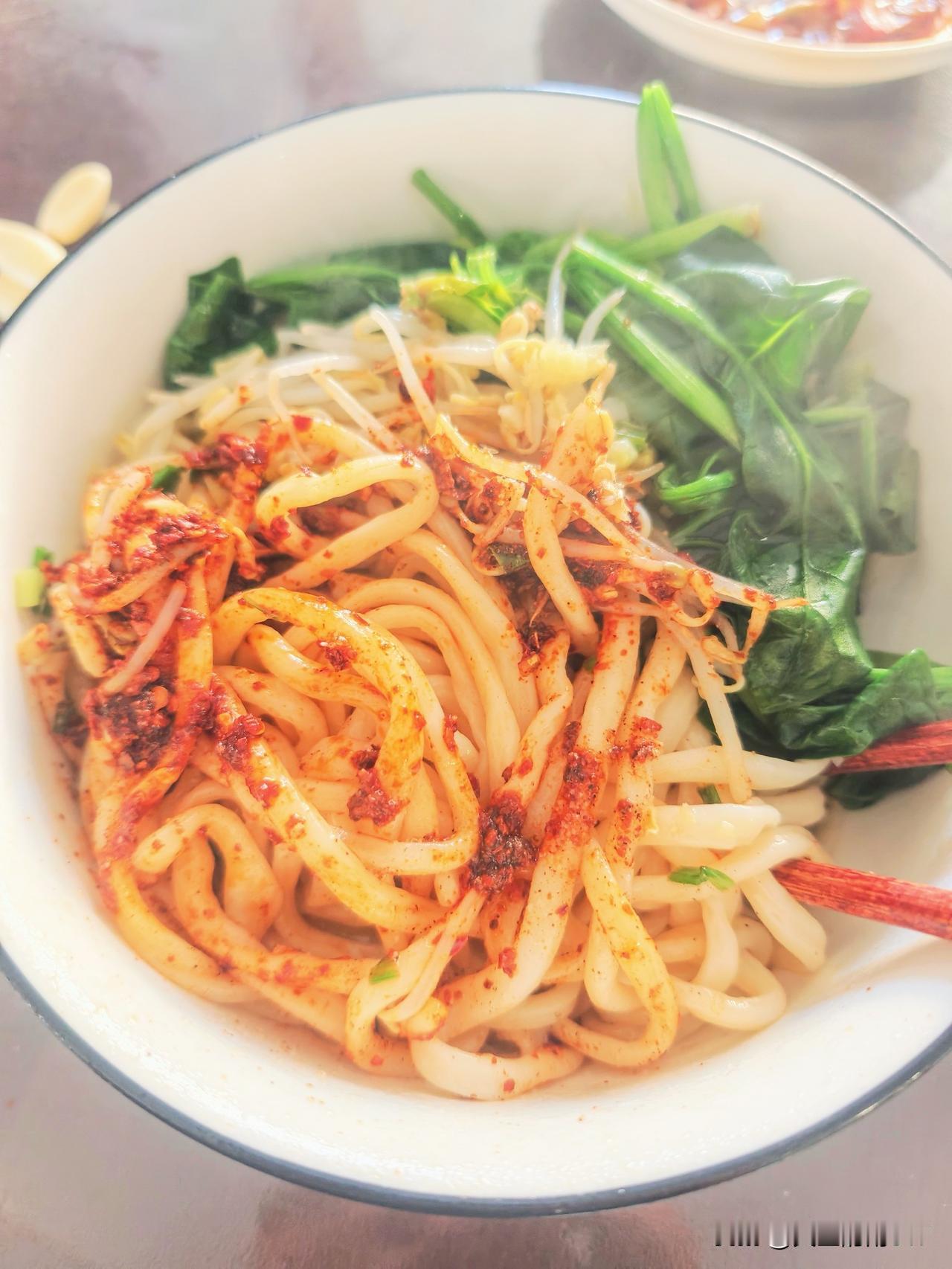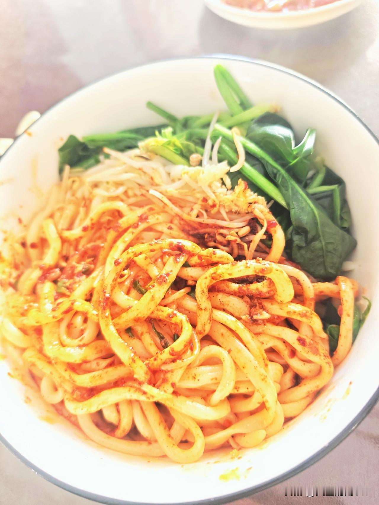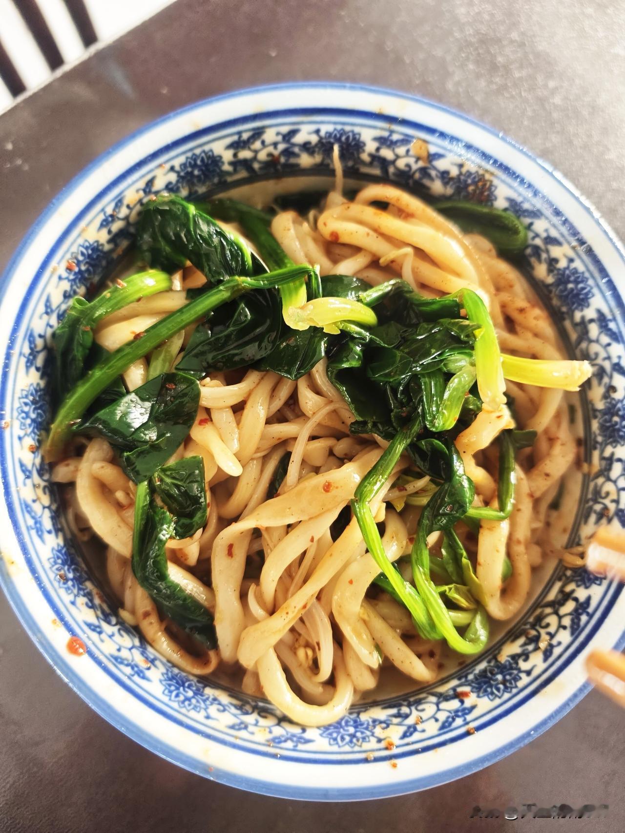 今天上午吃饭有点晚,是儿子说他一会回来,要吃油泼面。这专门给忙活了白天,做了一顿油泼拉条子。我好久没有喝啤酒🍺,专门来一瓶干啤。