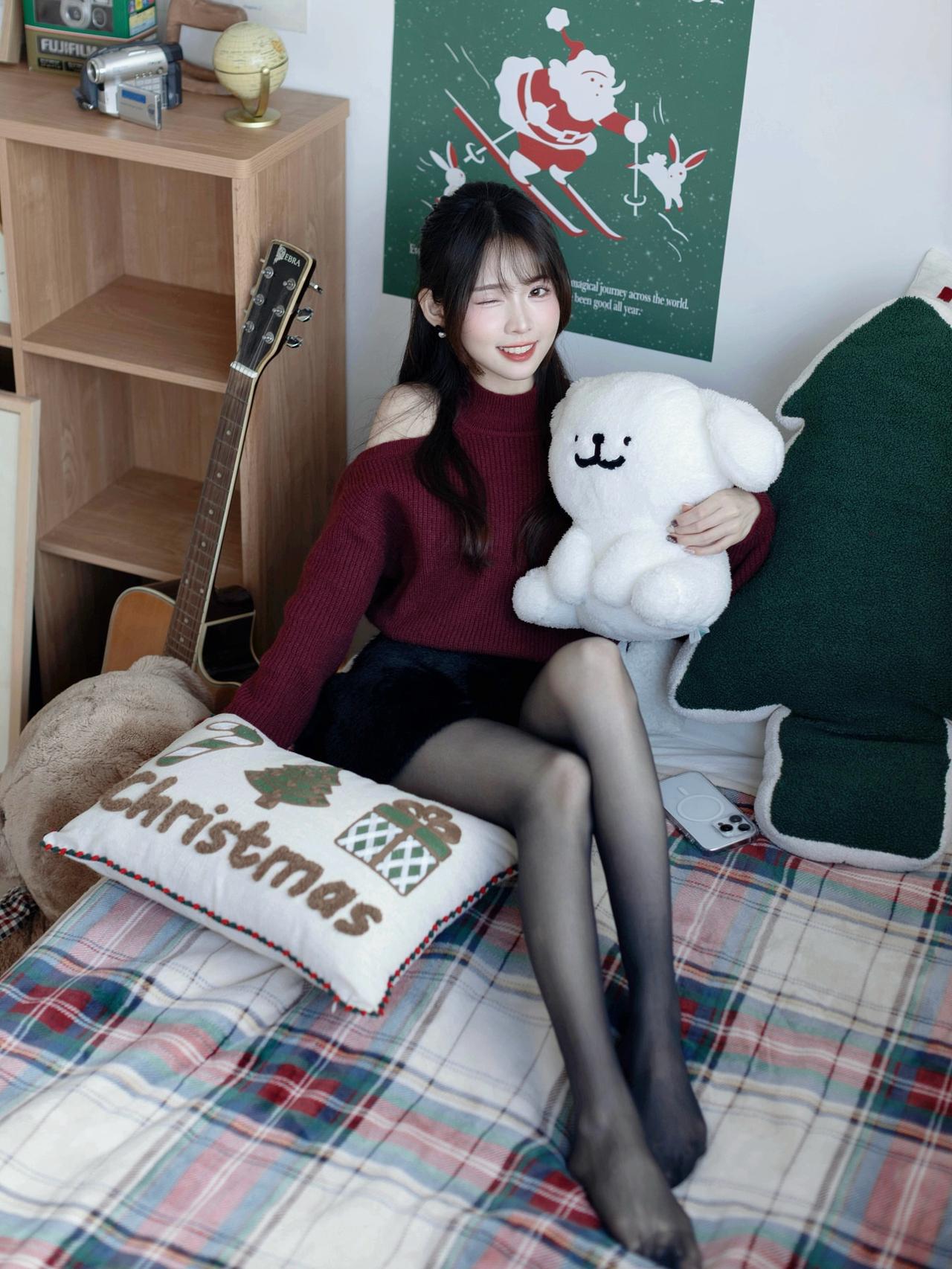 圣诞氛围浓厚的温馨场景,甜美少女与姜饼人共度美好时光。怎样穿搭能显示出温柔的女生