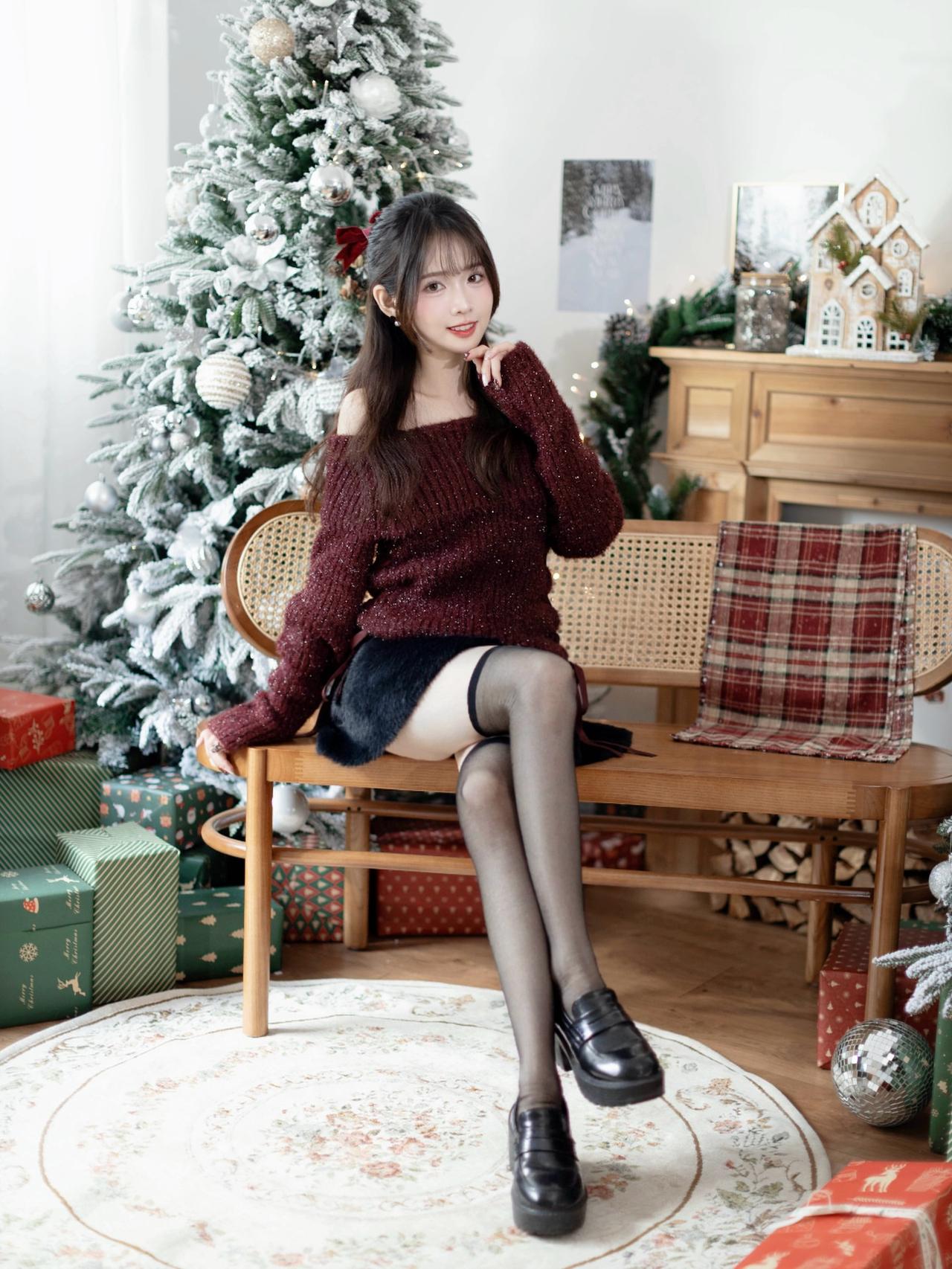 冬日暖阳下,圣诞树旁,甜美少女与礼物相伴,温馨又浪漫。气质穿搭怎么穿才恰到好处?