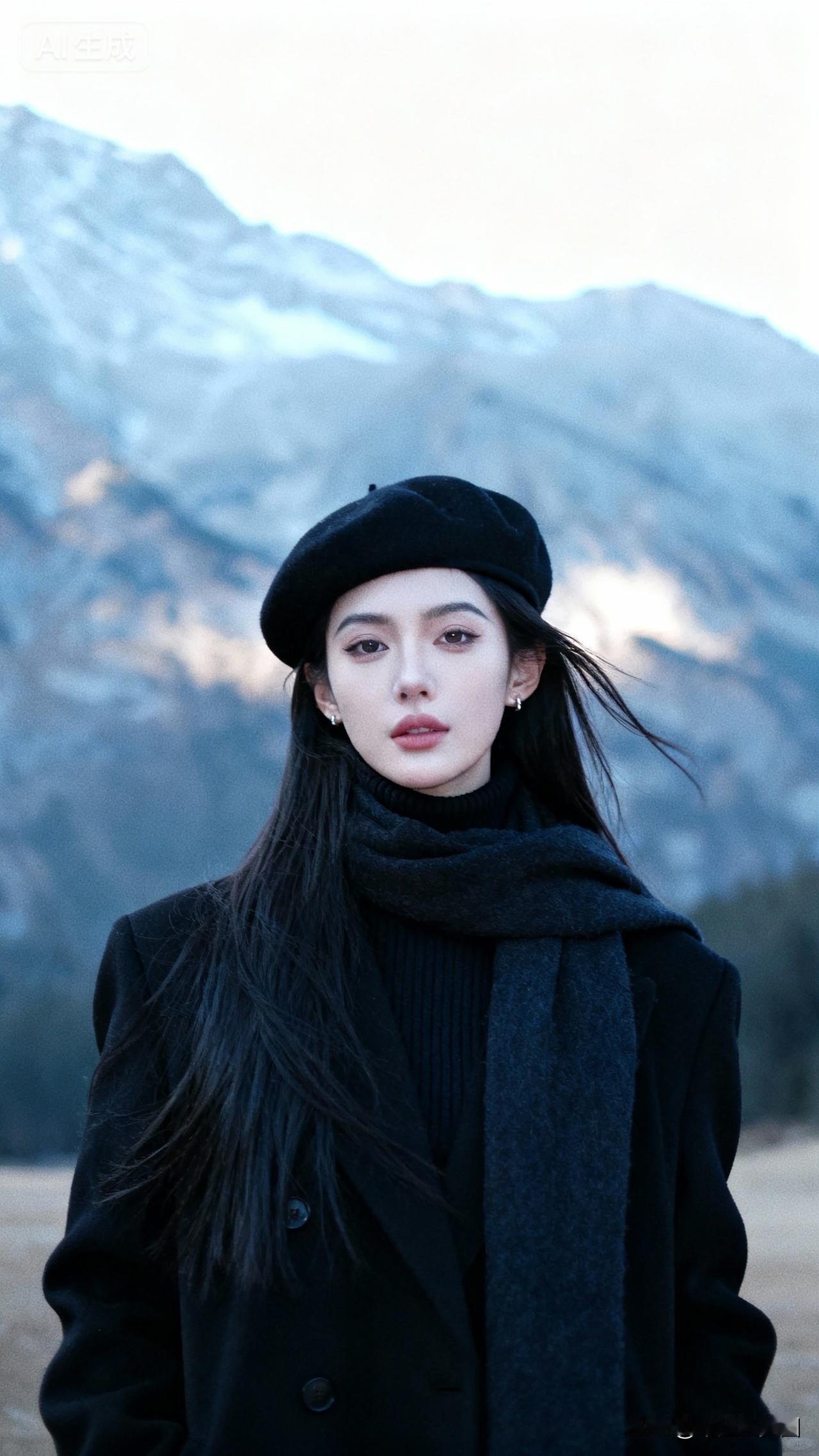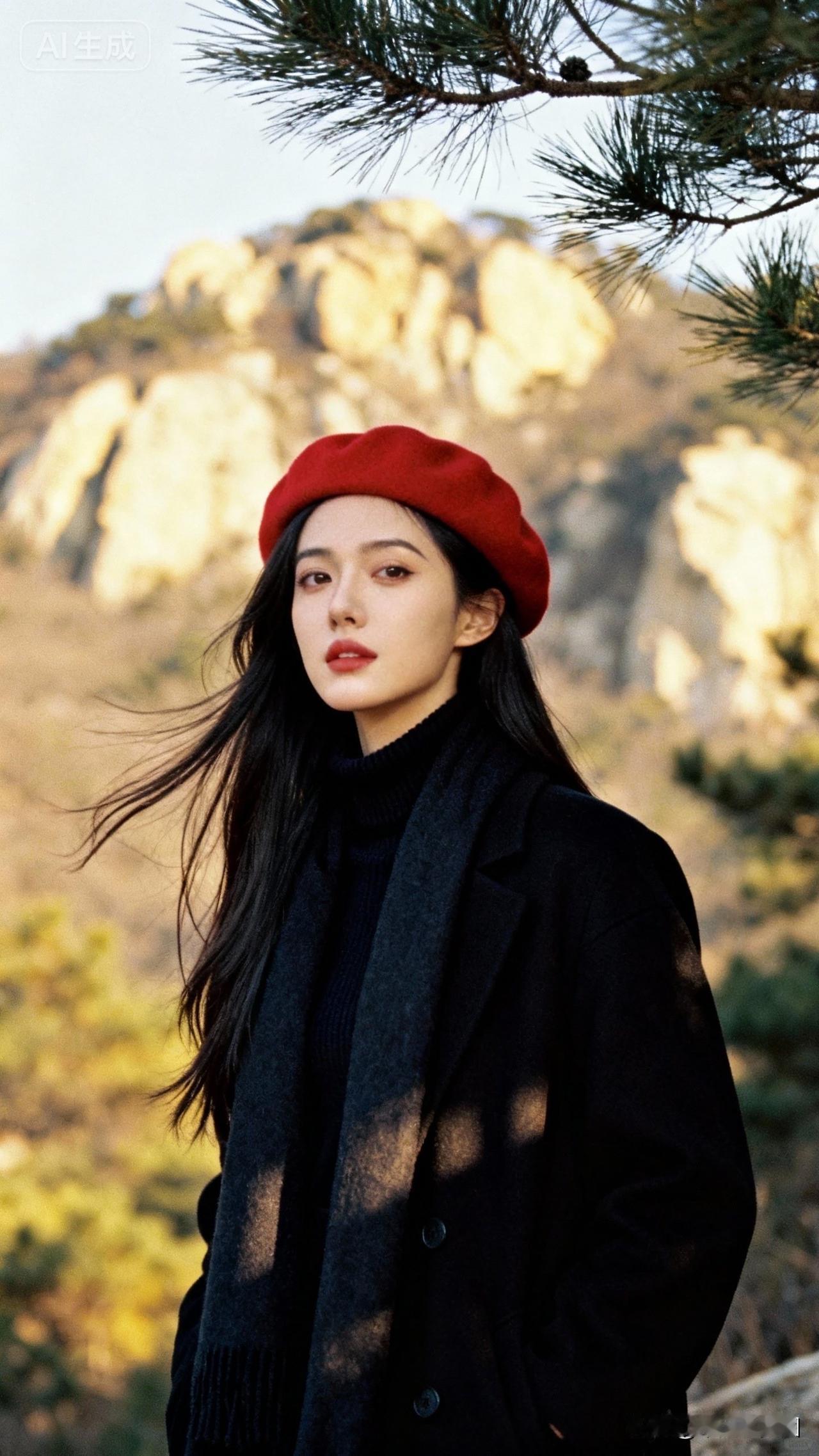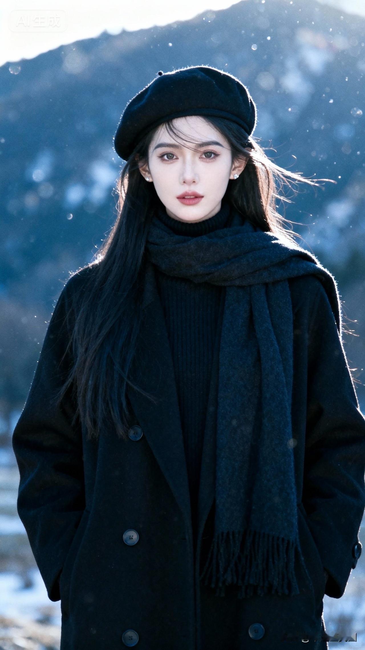 冬日暖阳下的黑衣少女,散发着优雅的魅力。