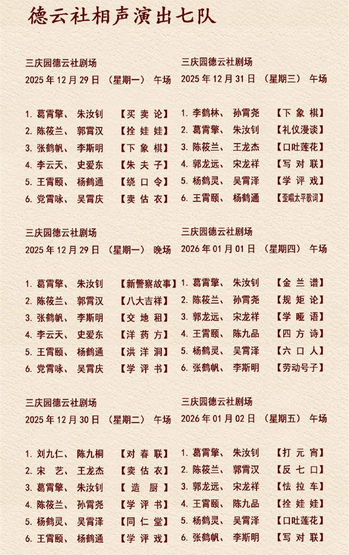 德云社七队演员太火、太红也有烦恼!演员,肯定都想着走红,登上更大的舞台。但是,一个队伍,演员都火热,大部分被抽调参加跨年专场 ,那就会面临演员不足的情况。这不,七队就被偷家了。下周,七队成了四队的第二个舞台。从周一开始,每天都有三对或三对以上演员到七队助演。最狠的是,跨年那一天,七队的攒底、倒二都不是七队的演员。