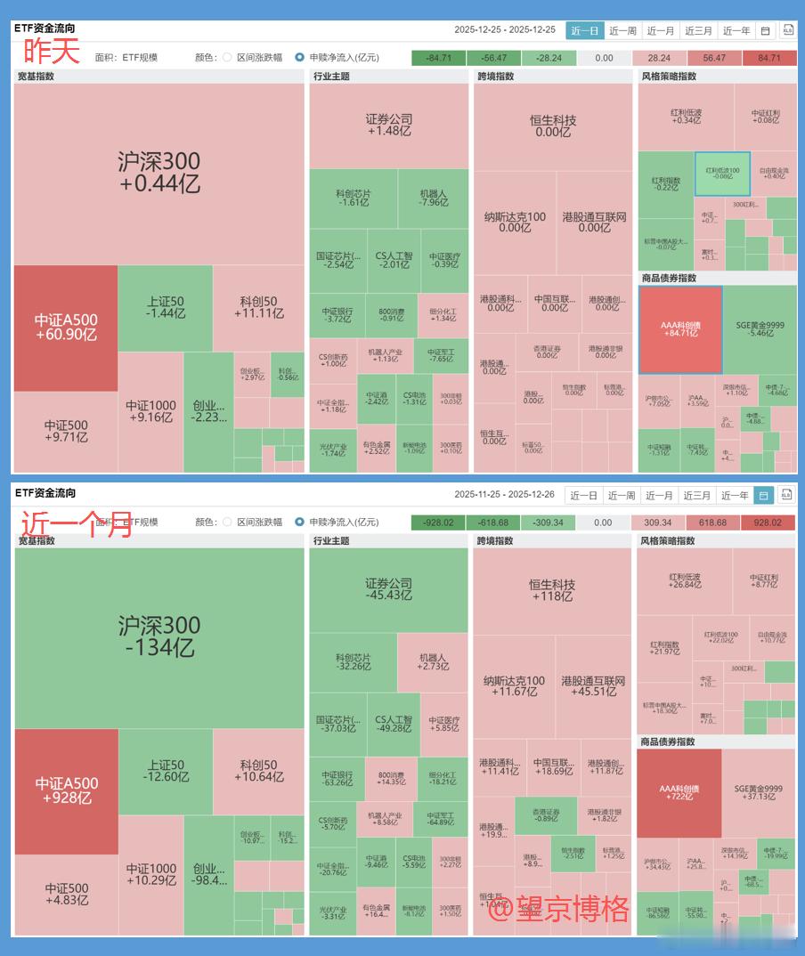 千亿资金买入A500,钱都来自哪里?昨天:中证A500净流入60.90亿元,沪深300净流入0.44亿元;近一个月:中证A500净流入928亿元,沪深300净流出134亿元;有人说,最近流入中证A500的资金都来源沪深300的流出,从数据看不靠谱,中证A500流入近千亿,沪深300流出百亿多。机构为啥年底买这么多A500呢?有人说是基金公司营销所致,机构也不傻啊只能说机构有配置的需求,同时基金公司力推A500,才有这样的结果。统计数据不易,大家点赞支持。基金a股中证A500