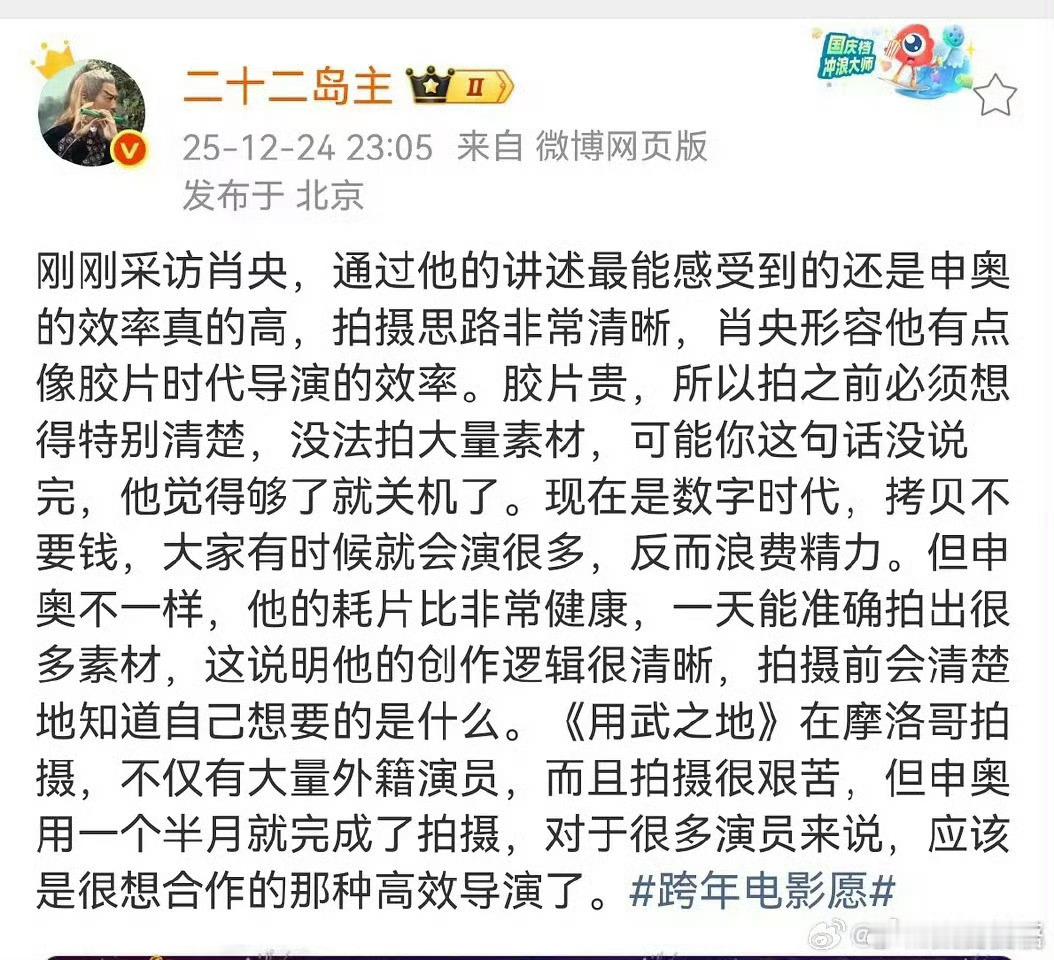 申奥导演这个品质,真的太受演员和制片欢迎了。导演一定要高效。